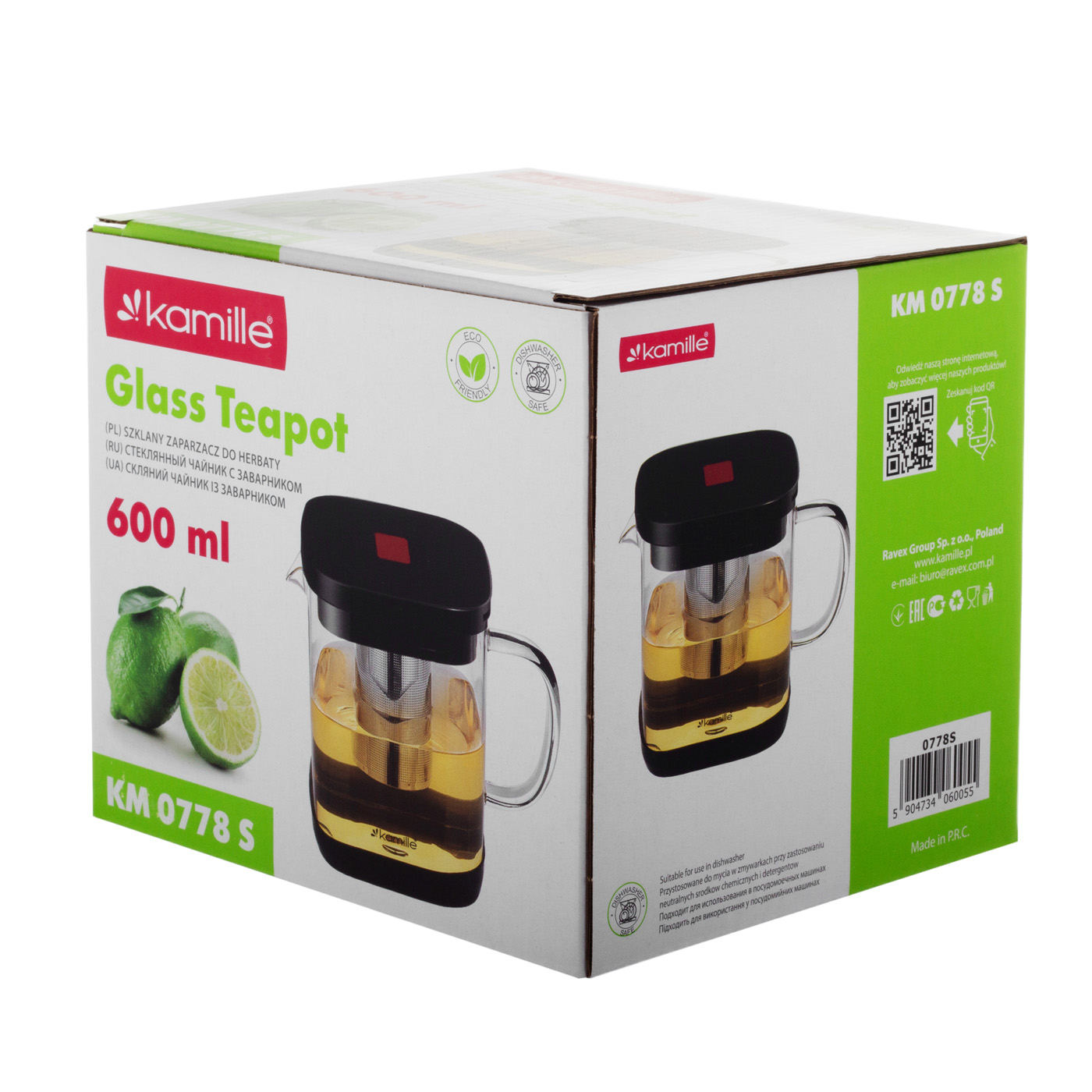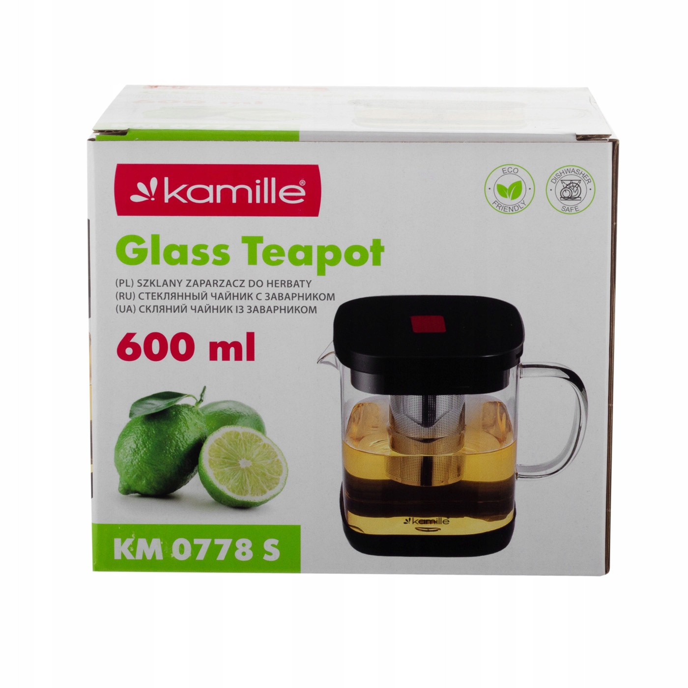 чайний пивовар Kamille виготовлений з високоякісної нержавіючої сталі, пластику та тепловідносійного та міцного скла.