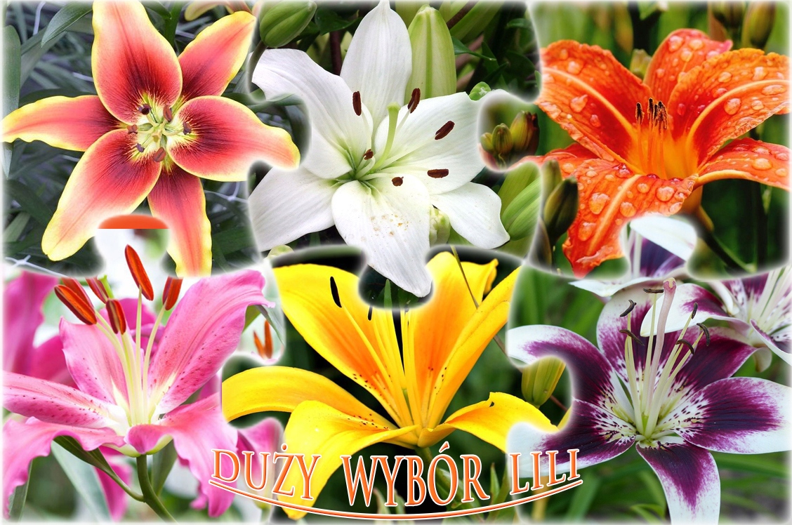 лілії - рослини, вирощені в садах у давнину. Відомо близько 100 видів диких в Азії, Європі та Північній Америці. Садові сорти, які вирощуються на кілька тисяч, були розділені на групи залежно від походження. Найпоширенішими є азіатські лілії, лілії La (лілгіфлорум та азіатські лілії гібриди, труба та східні лілії).