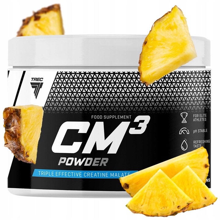 CM3 — препарат, що містить трикреатину малат. Це стабільна, стійка до кислого середовища травного тракту і добре розчинна форма креатину. CM3 містить креатин, який підвищує фізичну працездатність у разі наступних коротких, дуже інтенсивних фізичних вправ. Сприятливий ефект спостерігається при споживанні 3 г креатину на день.