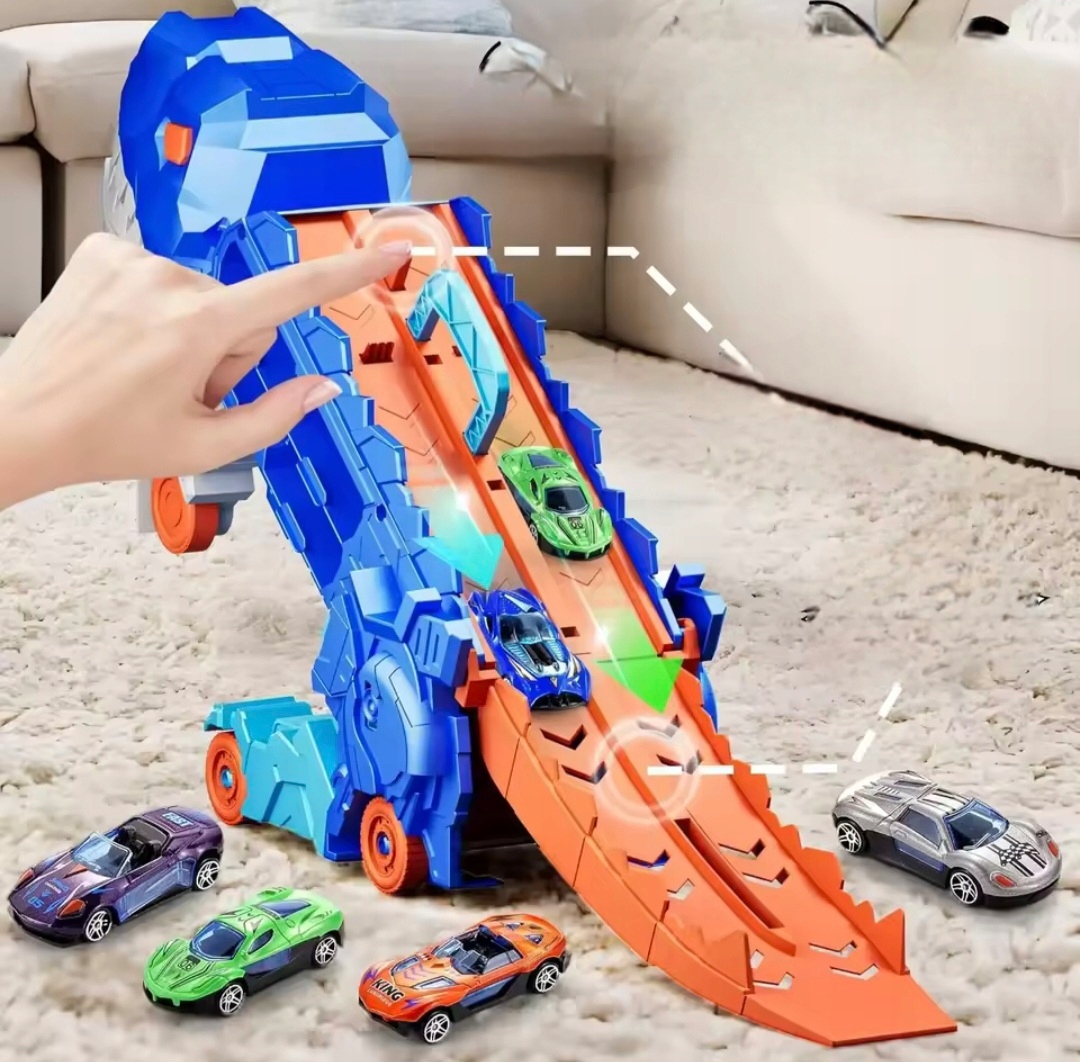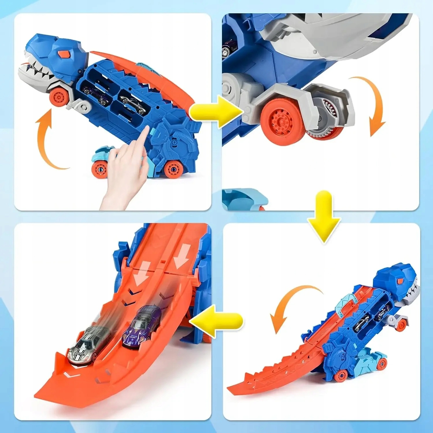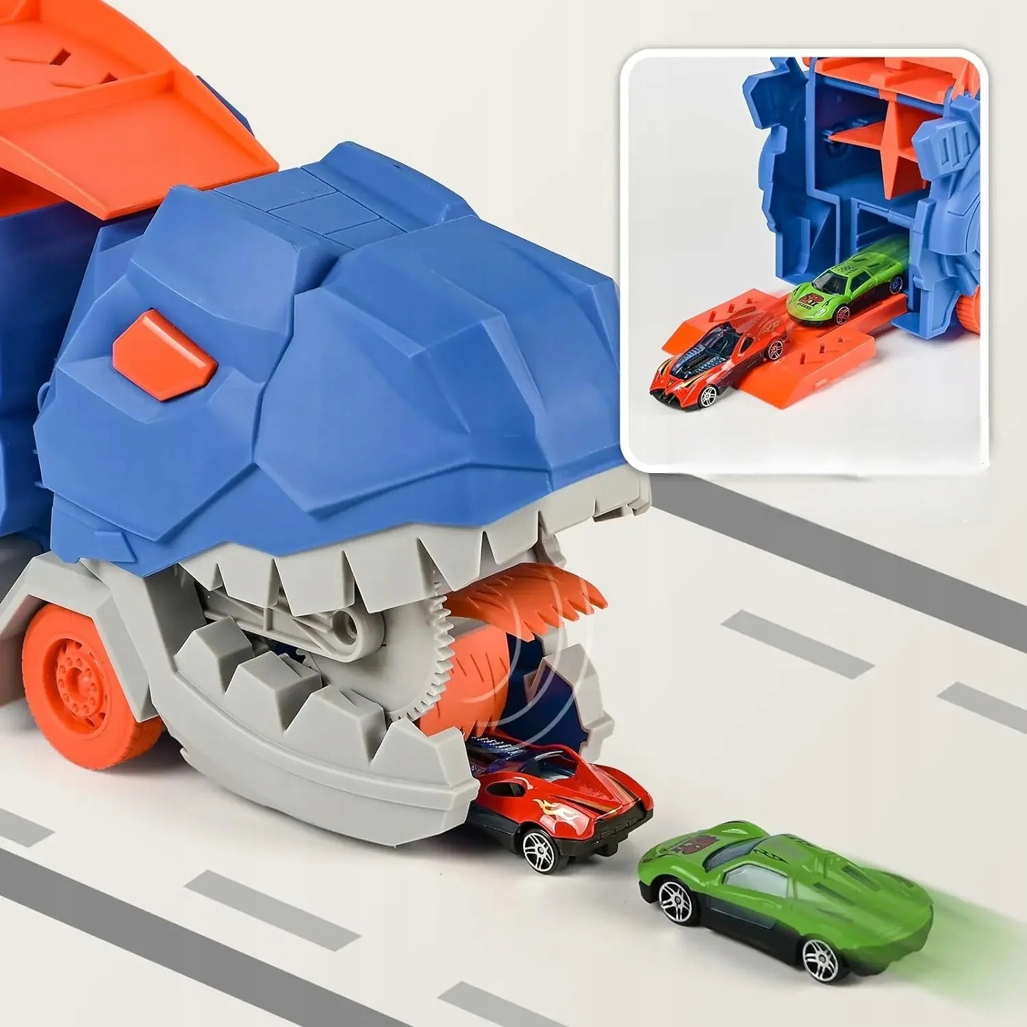 [Функція харчування та зберігання]: Динозавр може проковтнути міні -курс до рота, після того, як ковтання автомобіля може вислизнути з дверей динозавра. У корпусі динозавра розміщуються машини, які не тільки роблять прибирання після гри. Весело, вдосконалення їх когнітивних та оперативних здібностей.
