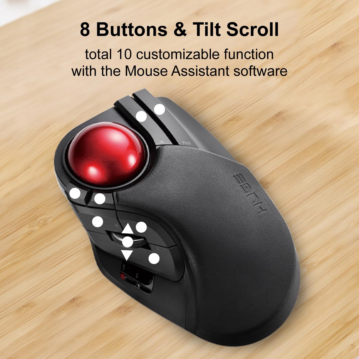- Оброблений пальцем, велика трекбольна миша Z 8 з кнопками та плавним відстеженням, точним оптичним датчиком ігор (M-HT1DRBK)