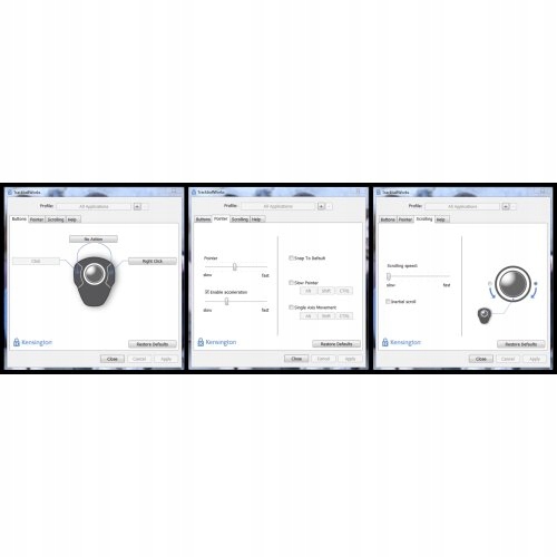 - Програмне забезпечення TrackballWorks дозволяє програмувати функції 2 кнопок і встановлювати курсор і швидкість прокручування
