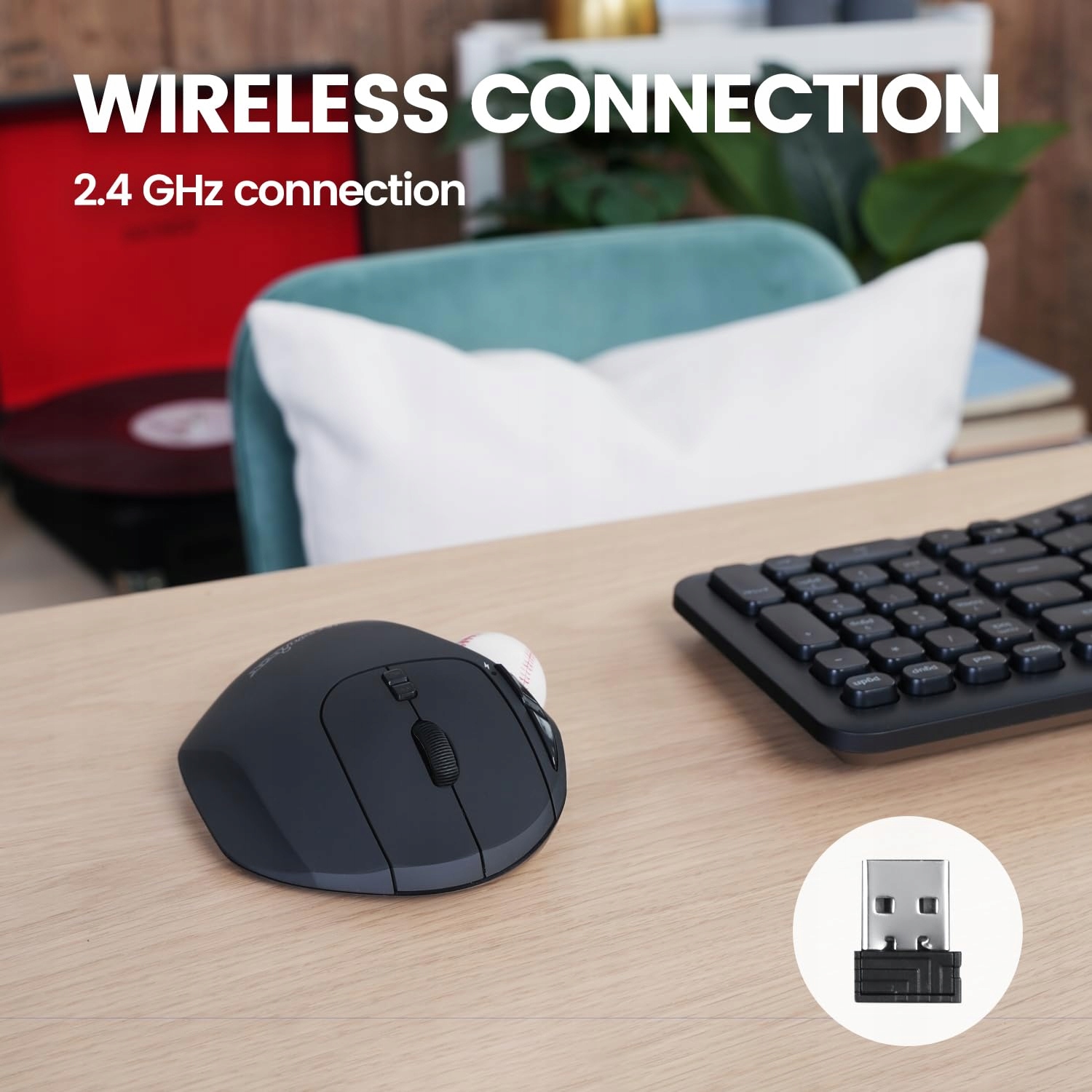 - Ергономічна бездротова миша з комбінації 2,4 ГГц, 5 програмованих кнопок, легка зміна швидкості курсору за допомогою кнопок комутації DPI
