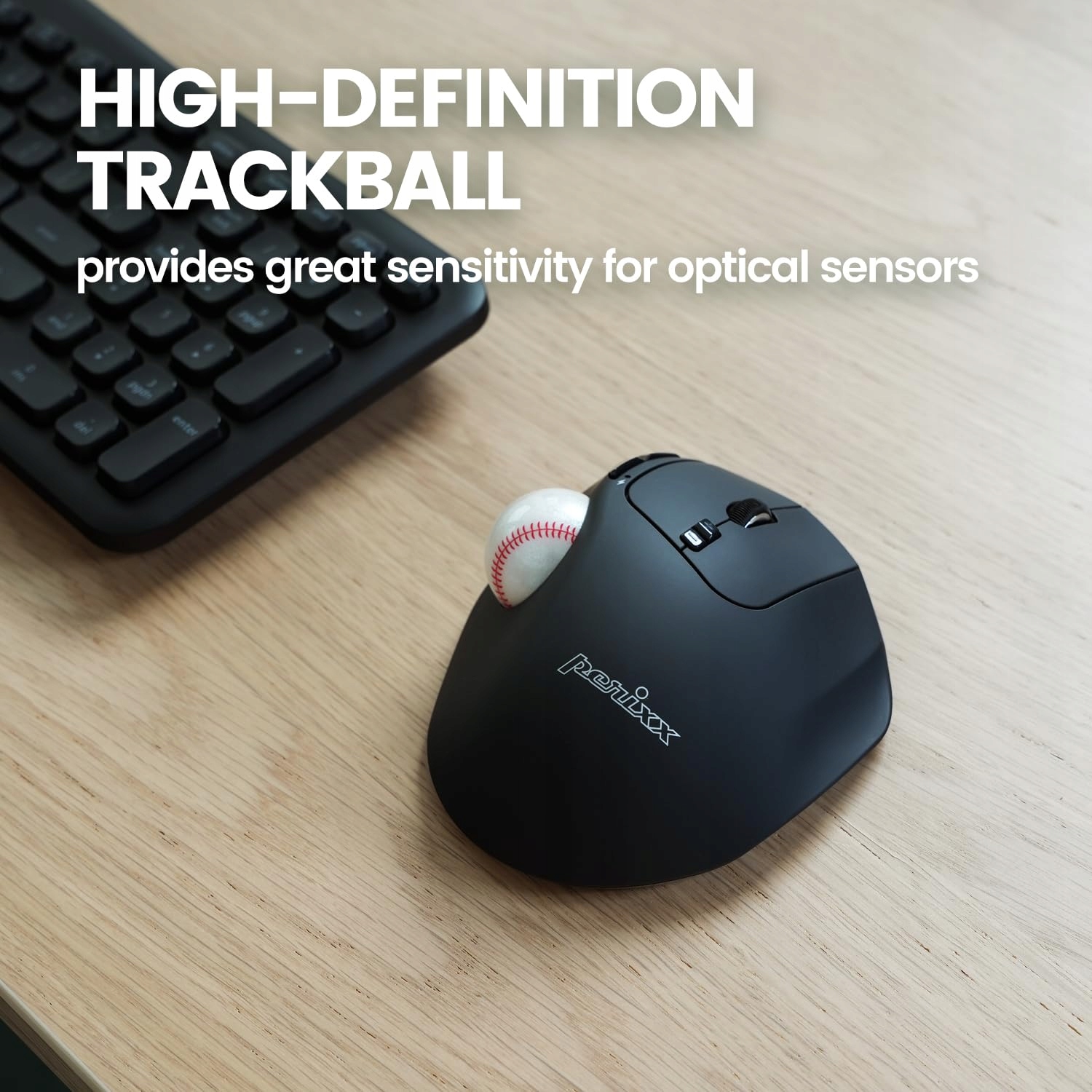- PERIXX PERIMICE-717BAB Wireless trackball mouse, integrated 3.4 cm control ball, 2 DPI switch, one of a kind sports baseball edition