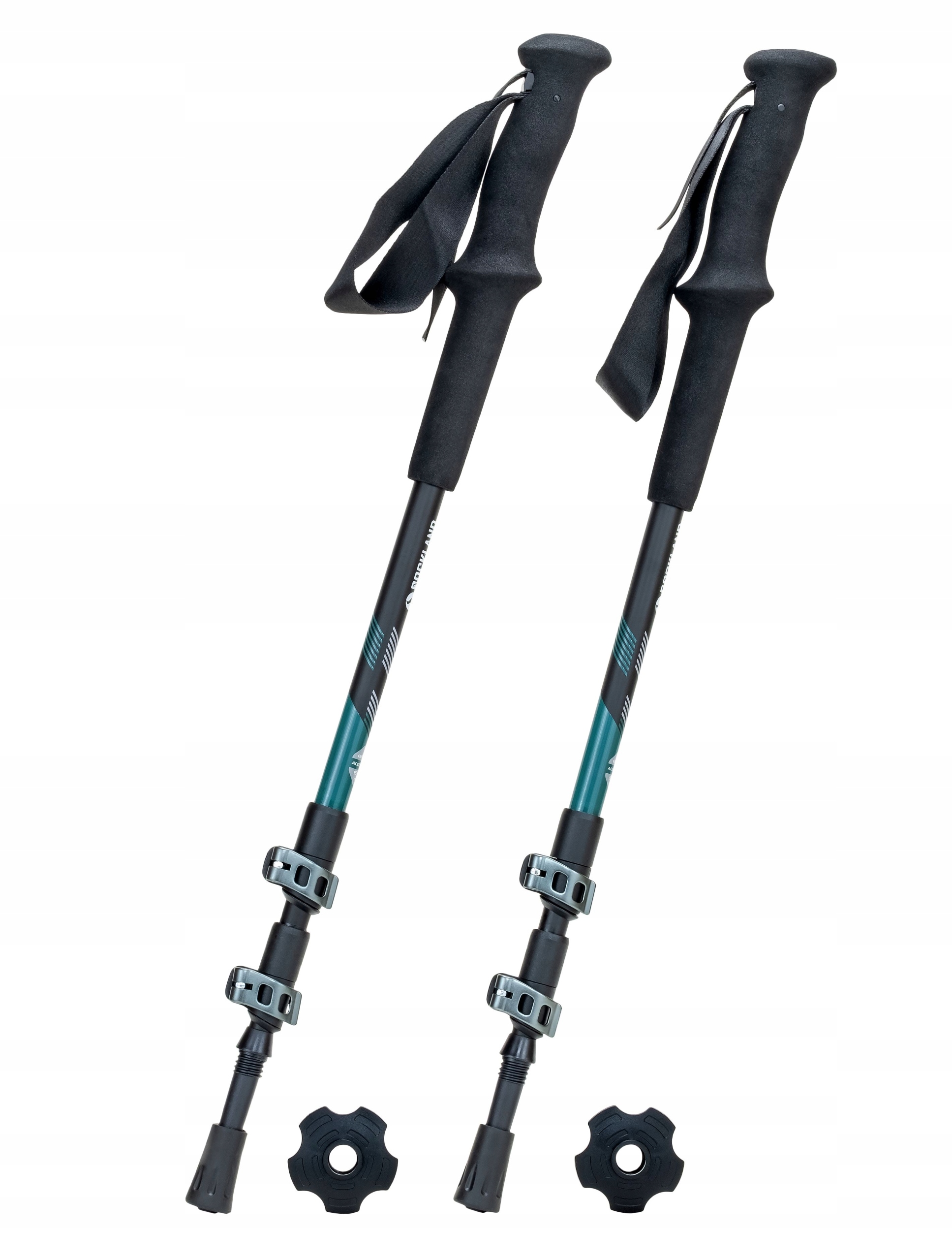 Найважливішою перевагою є довговічність і мала вага палиць. Вага набору всього 400 грам. Максимальна висота жердин у розкладеному вигляді становить 120 см, а транспортне значення - 59 см. Як ми вже згадували, палки виготовлені з вуглецевого волокна. Це міцний матеріал з хорошою механічною стійкістю. Забезпечує міцну підтримку під час ходьби. Паличка складається з трьох сегментів, що звужуються донизу. Нижній сегмент закінчується наконечником, на який ми можемо надіти кришки, т.зв. взуття. На ньому є різьба для прикручування пластин. У цій моделі ми можемо використовувати всі поради з нашої пропозиції. Стовпи оснащені fast-lock. Висота палиць регулюється, і ми можемо вільно регулювати їх відповідно до нашого зростання та потреб. Замки стягуються шурупами. Система фіксації висоти стовпа Fast-Lock складається з одностороннього відкритого кільця, ексцентрикового гвинта та фіксуючого важеля. Система блокування "fast-lock" регулюється шляхом затягування або послаблення стопорного гвинта та затягування його за допомогою алюмінієвого важеля.