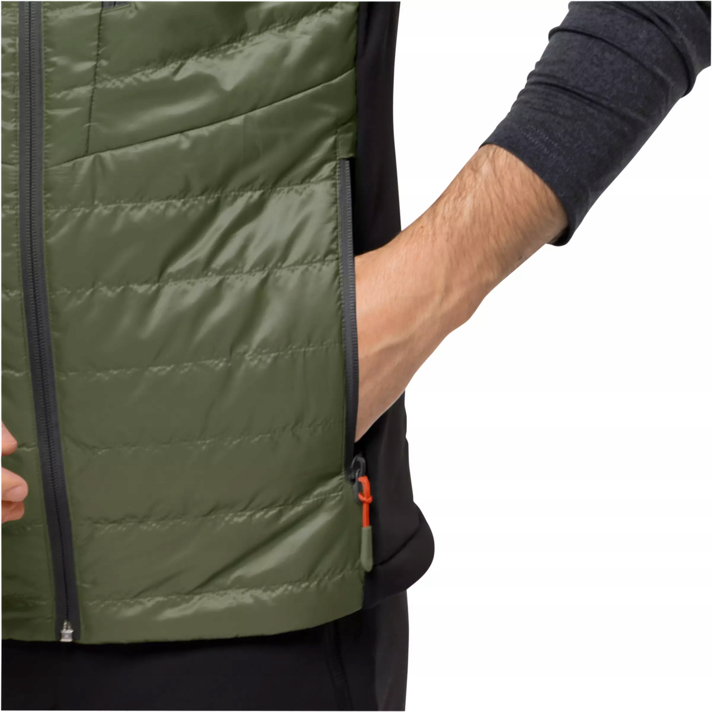 Еластичні флісові вставки забезпечують гнучкість, завдяки чому жилет адаптується до кожного руху. Жилет можна носити як зовнішній шар або як утеплювач під мембранну куртку.