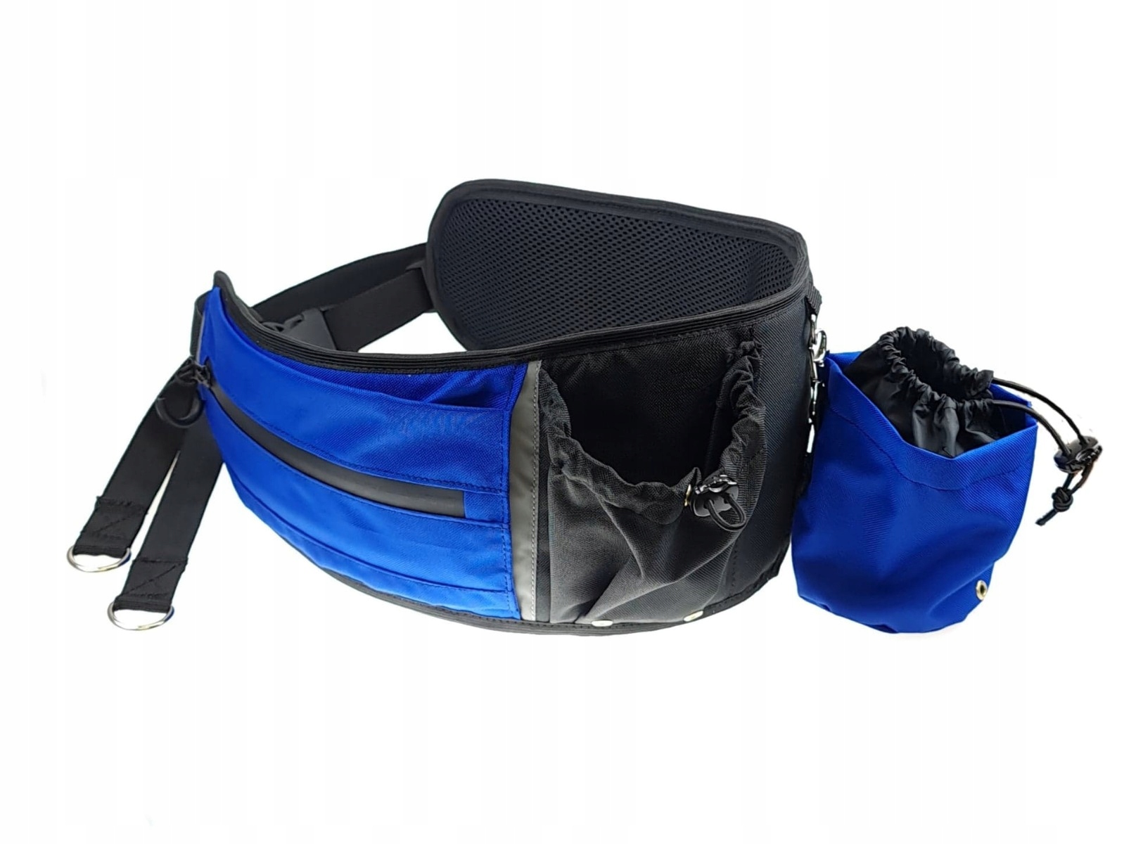 Ззаду на поясі є дві сумки зі шнурком, у яких можна носити, наприклад, ласощі для собак. Внутрішній пояс оброблений приємною на дотик дистанційною сіткою.
