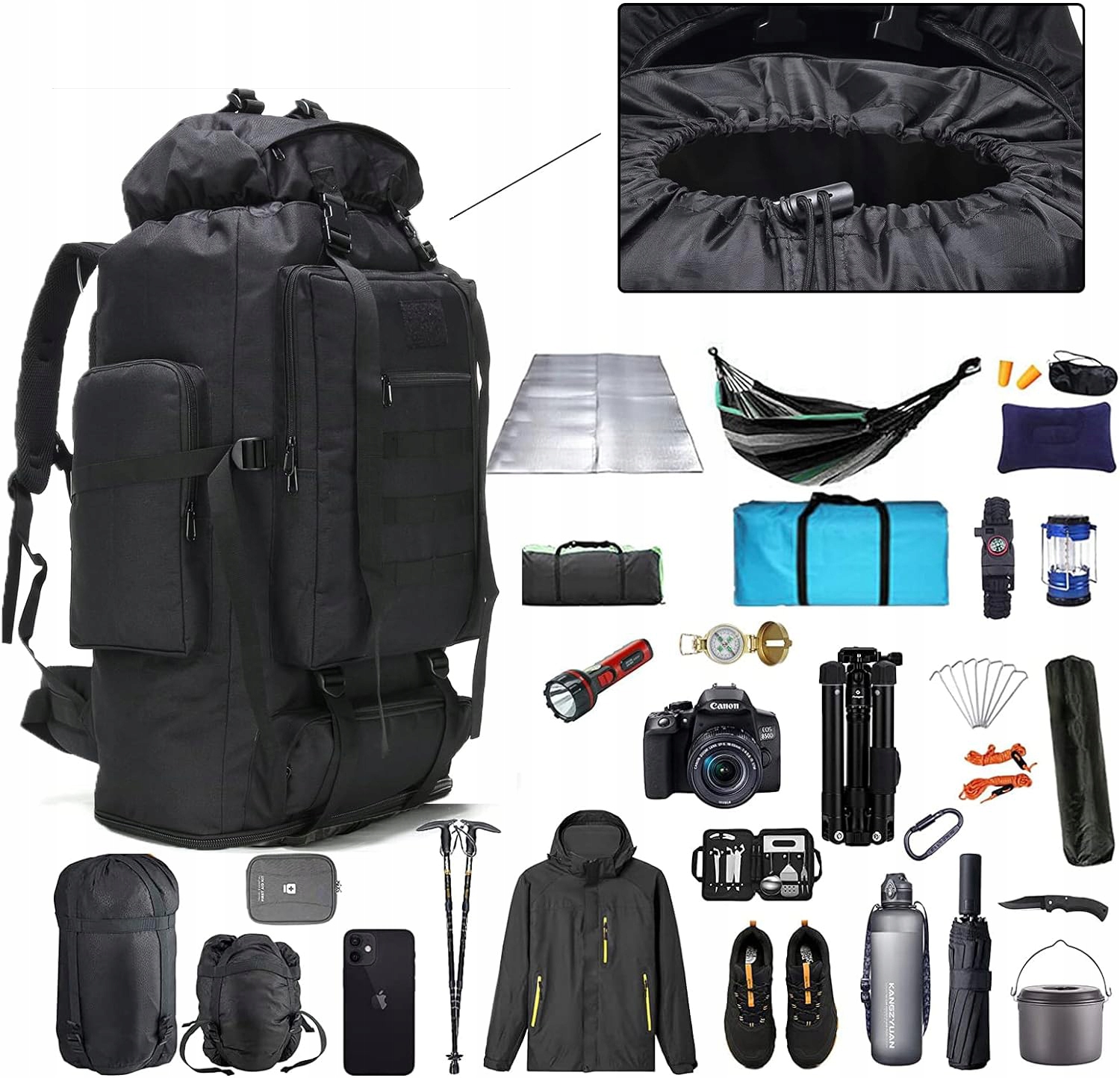 Дорожній рюкзак має велику ємність 100 л, який унікально оснащений функцією розширення для збільшення ємності з 70 л до 100 л. Основна сумка для зберігання має еластичний шнурок, який може розширити рюкзак. Численні відділення та розумний простір гарантують, що ваші найважливіші речі будуть зручними та добре організованими.