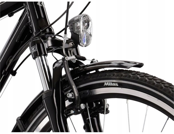 Передні та задні V-гальма відповідають за зниження швидкості. Завдяки їм можна гальмувати в будь-яких умовах. Це дуже популярні, безвідмовні та універсальні ободні гальма. Kross Trans 3.0 також має амортизаційну вилку SR Suntour M3010, яка завдяки ходу в 50 міліметрів полегшить їзду по нерівних поверхнях і забезпечить комфорт під час їзди по найскладніших поверхнях.