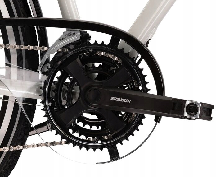 Використовуючи задній перемикач Shimano Acera та передній перемикач Tourney, нам вдалося отримати аж 21 передачу. Вони полегшать долання крутих пагорбів і досягнення високої швидкості на рівних ділянках дороги. KROSS Trans 4.0 також має амортизаційну вилку SR Suntour M3010, яка полегшить їзду по нерівних поверхнях і забезпечить комфорт під час їзди по поверхні, яка давно пережила славу.