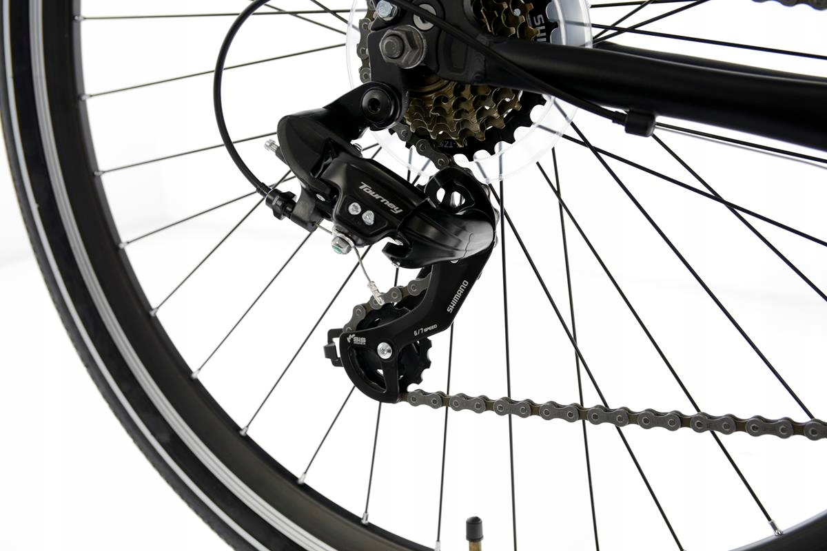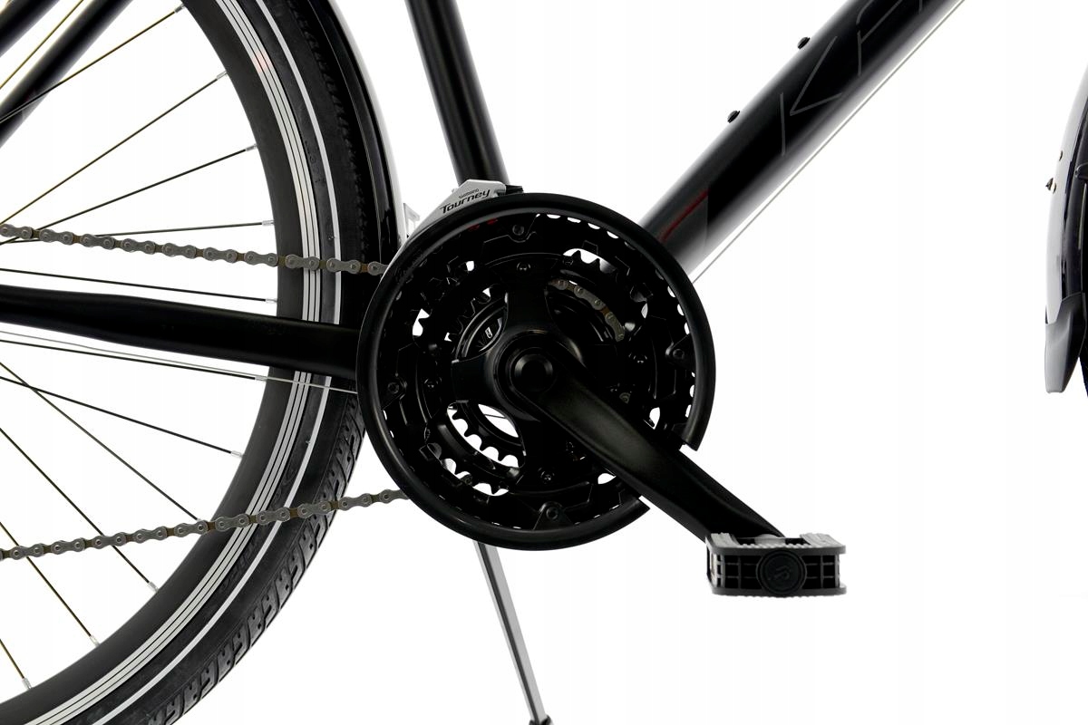 Це суцільний польський велосипед з алюмінієвою рамою на 28 колесах, та на обладнанні Shimano Tourney (21 передача). обладнання Shimano забезпечує спокійну експлуатацію, проблеми -без проблем -безперебійне перемикання передач.
