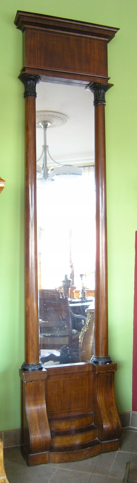 Tremo Biedermeier для обслуговування. червоне дерево. Консоль: 60 см х 20 см; висота 49 см. Дзеркало: ширина по карнизу 67 см; висота 218,5 см. Загальна висота 267,5 см. Я залишаю за собою право достроково завершити аукціон.
