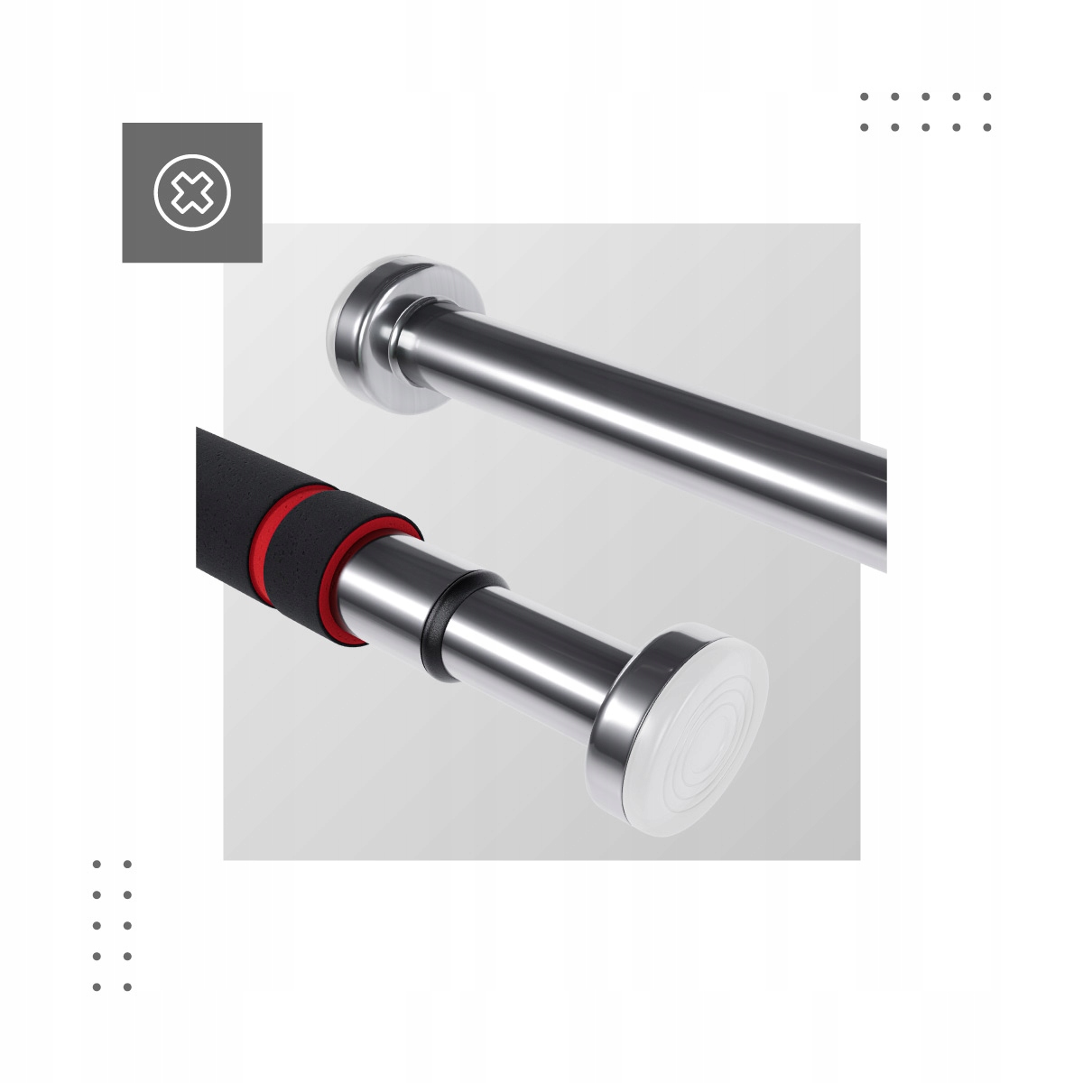 Можливість регулювання від 62 см до 100 см робить штангу Monkey 10 верхню планку легко регулювати для кожної дверної рами. Без складної збірки, свердління та руйнування дверної коробки. Кінці штанги оброблені силіконовими ковпачками, які запобігають дряпанню стіни.