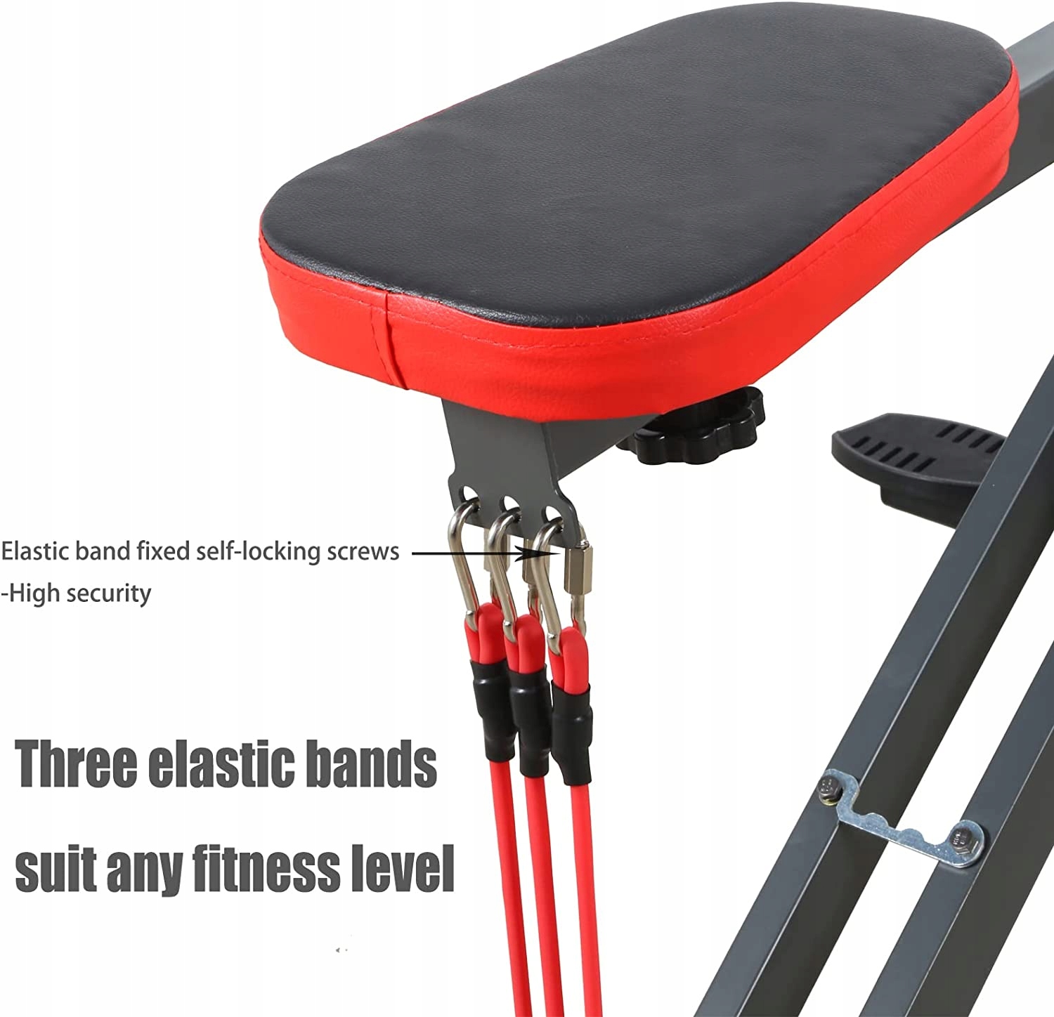 Три еспандери можна закріпити або прикріпити до сидіння відповідно до будь-якого рівня фізичної підготовки. Дисплей відстежує час, кількість повторень (хвилини), кількість і спалені калорії в реальному часі.