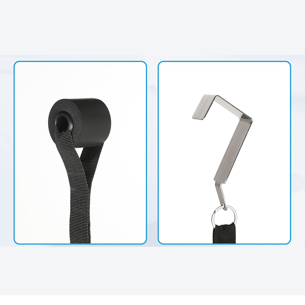 - Свердління не потрібне, не пошкодить дизайн інтер’єру. Оснащений гачками з нержавіючої сталі та пінопластовим роликом високої щільності, кабель використовує проміжки у дверцятах для забезпечення надійного кріплення. Поролоновий ролик ефективно захищає дверну коробку від пошкоджень; збірка займає лише кілька секунд, створюючи куточок професійної реабілітації вдома.