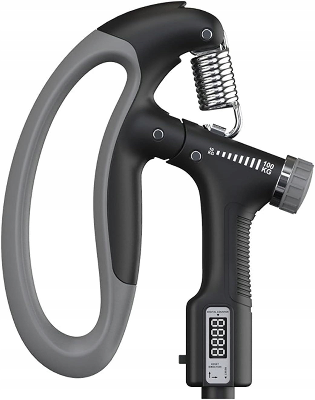 Матеріал Він посилений рукояткою з ABS і нержавіючої сталі, яка є зносостійкою та нержавіючої та підтримує тривале використання. Широке використання Може бути легким, міцним і портативним, підходить для офісів, студій, фітнесу, подорожей, бізнесу, туризму та інших ситуацій. Багатофункціональний портативний і міцний, він може тренувати зап'ястя, передпліччя та кисть, підходить для друзів, колег і членів сім'ї, які люблять фітнес. Протиковзка протиковзка ручка та високоякісна пружина з нержавіючої сталі роблять грипер зручним у використанні та допомагають користувачам краще тренуватися. Міні-підсилювач сили Регульований вагою 10 100 кг практичний для підрахунку щоденного обсягу тренувань і швидкого підвищення сили до вищого рівня.