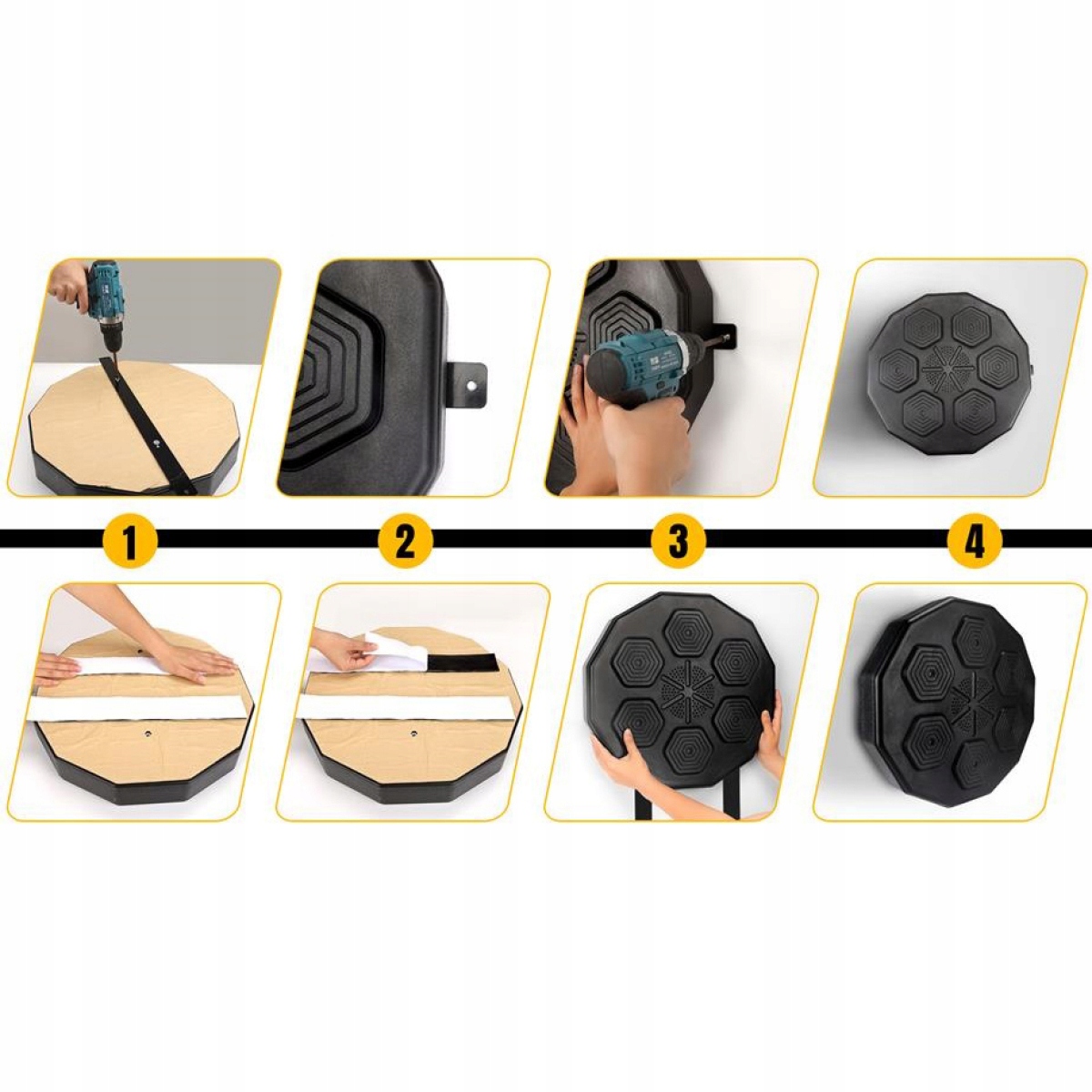 - Економія місця:мішень у коробці, міцна та міцна, маленька, можна встановити на стіну , легкий і портативний, який легко збирається за допомогою гвинтів. Прийнятні типи стін: стійки, цегла, бетон або шлакоблоки з гіпсокартоном.