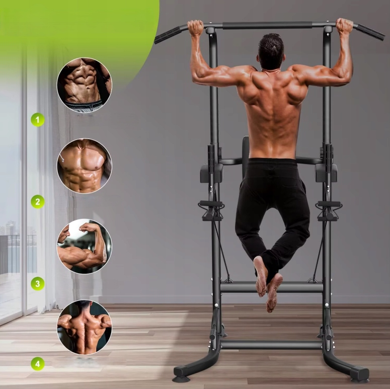 Отримайте форму, не виходячи з дому! Багатофункціональна тренажерна вежа Power Tower - це повний набір для тренування верхньої частини тіла, м'язів преса, грудей і рук. Міцна сталева конструкція, регульована висота та ергономічна обробка забезпечують комфорт, безпеку та ефективність кожного тренування.