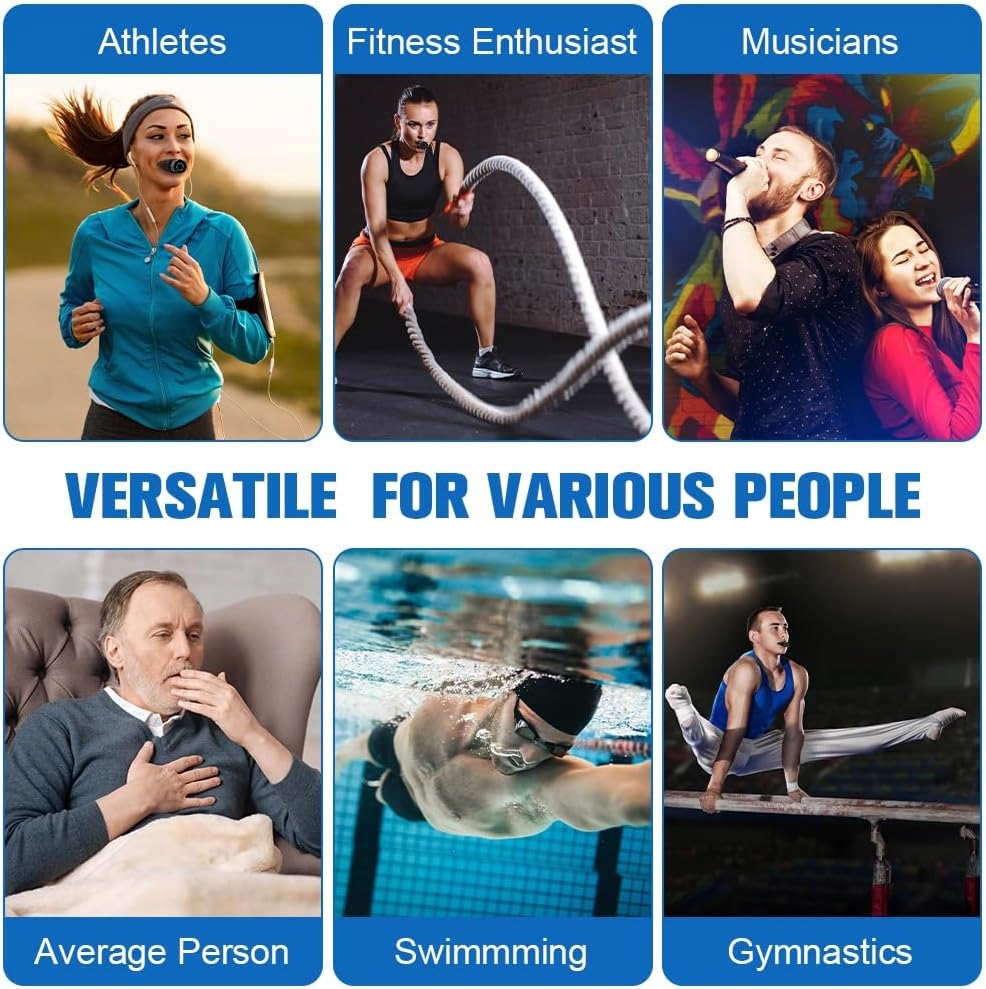 Універсальне використання : Дихальний тренер є ідеальним рішенням для людей різного віку, від дітей до людей похилого віку. Його компактний розмір дозволяє легко перенести, що дозволяє виконувати вправи де завгодно - вдома, на роботі, в тренажерному залі або під час подорожі. Це буде працювати як для спортсменів, плавців, співаків та людей, які хочуть покращити свій дихальний стан у повсякденному житті.