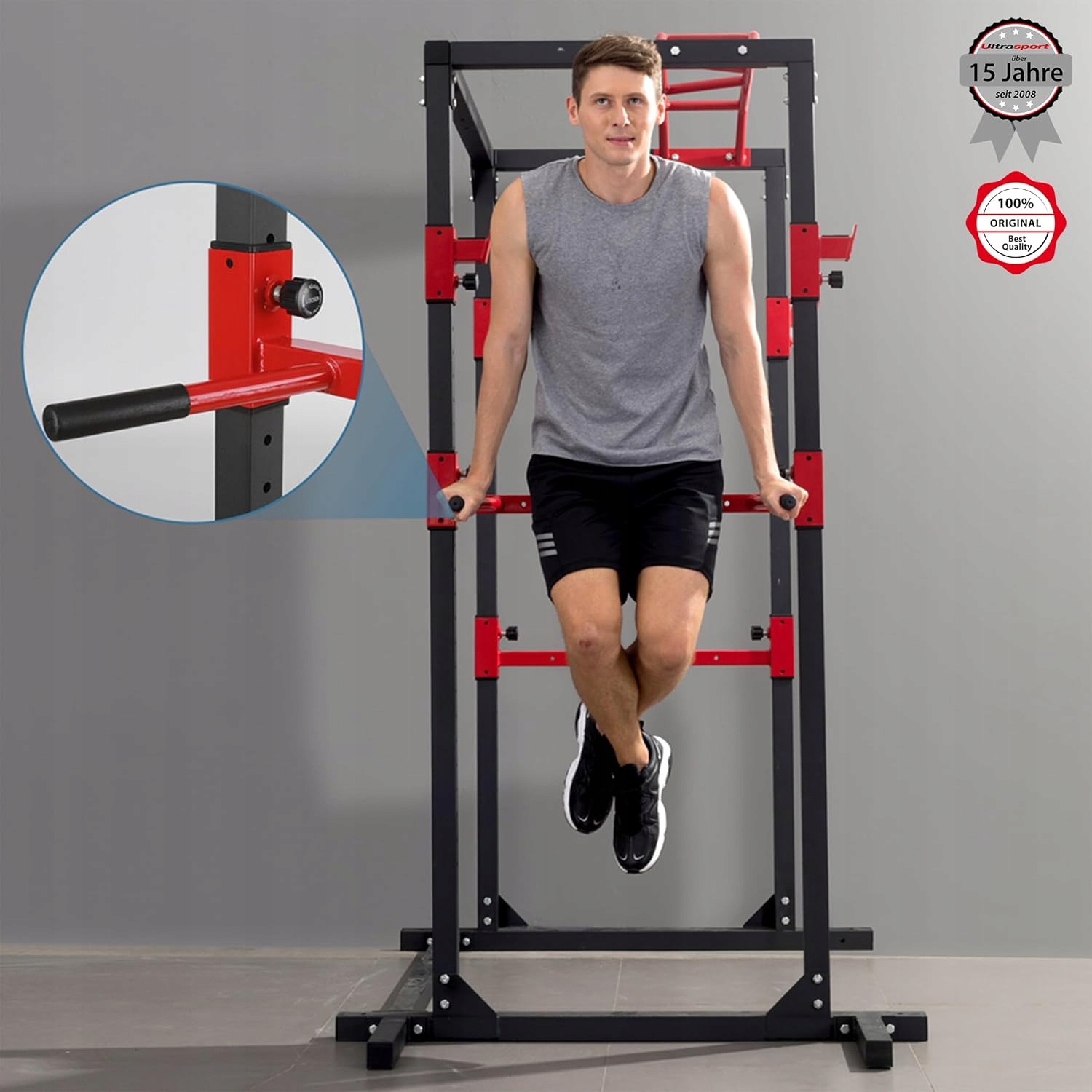 -in багатофункціональна стійка живлення Основні як початківці, так і професіонали можуть виконувати підтяжки, занурення, присідання та хрускіт на одному пристрої, всі необхідні ручки/смуги інтегровані