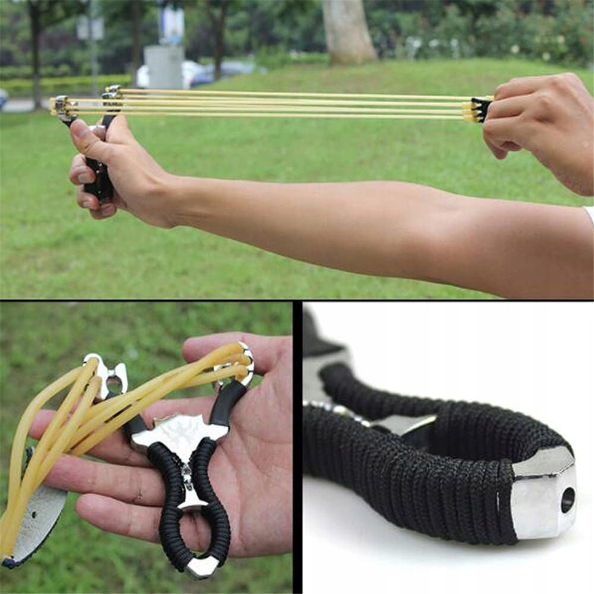 [💪] ПОТУЖНІСТЬ ТА ДОВГОВІЧНІСТЬ: професійна рогатка виготовлена з міцного цинкового сплаву, некрихкого пластику. Ручка міцна, а ручка обмотана міцною нейлоновою мотузкою для ідеального та надійного захоплення. 3 міцні накладки приводу гарантують більшу потужність, радіус дії та точність, ніж стандартні моделі.