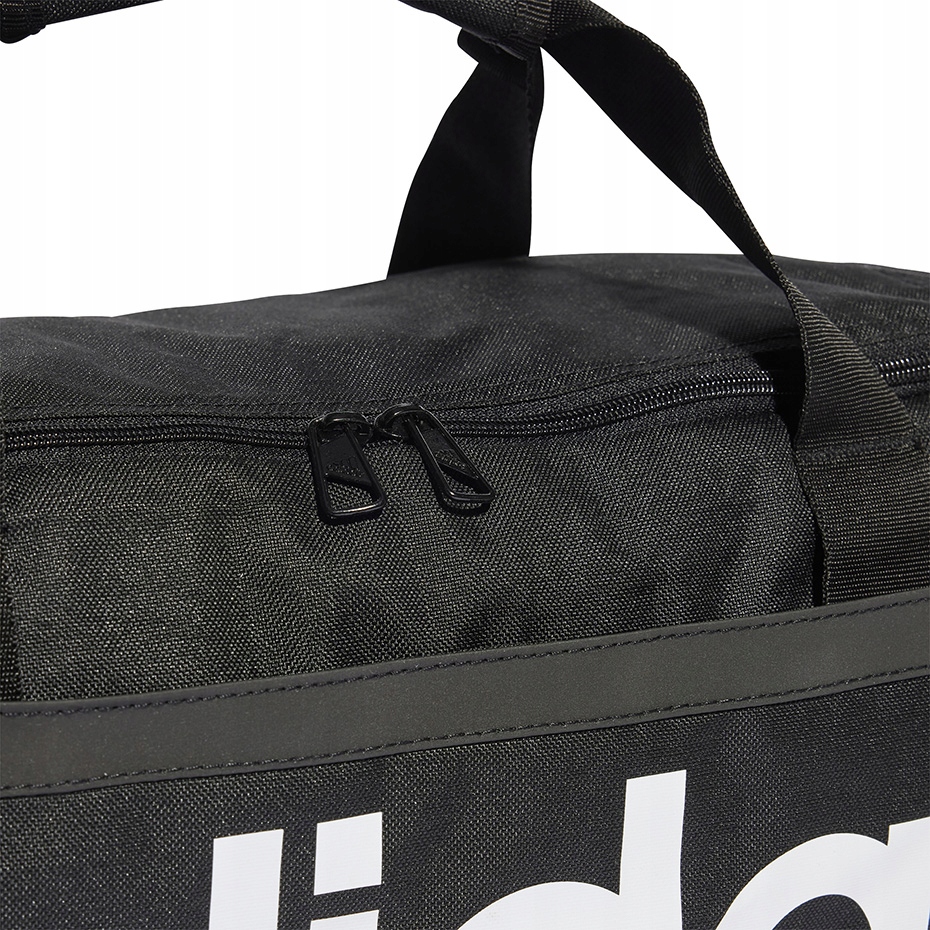 Простора спортивна сумка Adidas виправдає очікування кожного, хто хоче мати під час тренування все необхідне або багатоденна подорож. Чорна форма, доповнена постійними деталями, сподобається людям різного віку. Крім того, великий напис adidas спереду є контрастним акцентом, який також виконує функцію логотипу бренду та додає сумці сучасний відтінок. Сумка виготовлена з міцного переробленого поліестеру з полотняним переплетенням, що допомагає зберегти природні ресурси навколишнього середовища та зменшити викид шкідливих речовин.