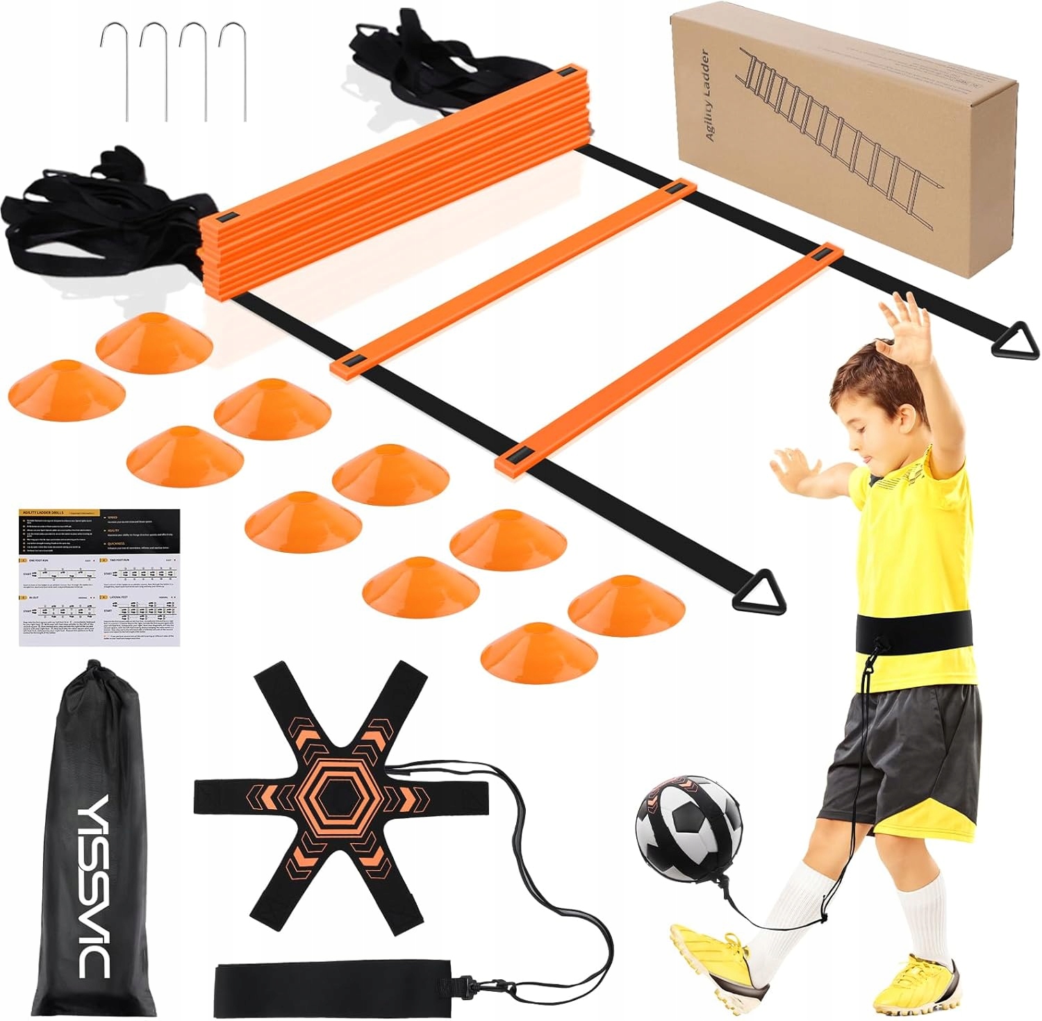 • Повний тренувальний набір - драбина, пояс і конуси пропонують багато варіантів вправ.