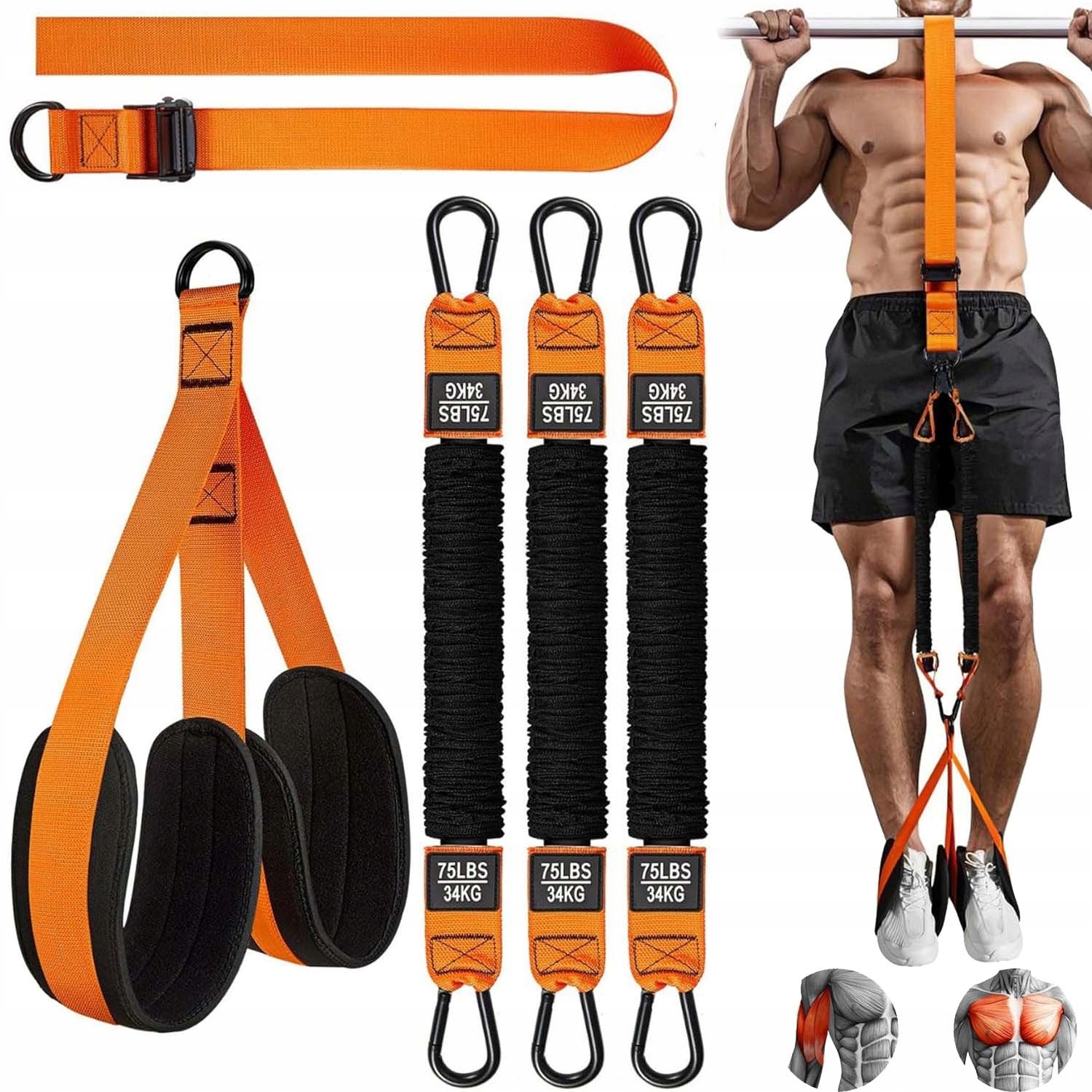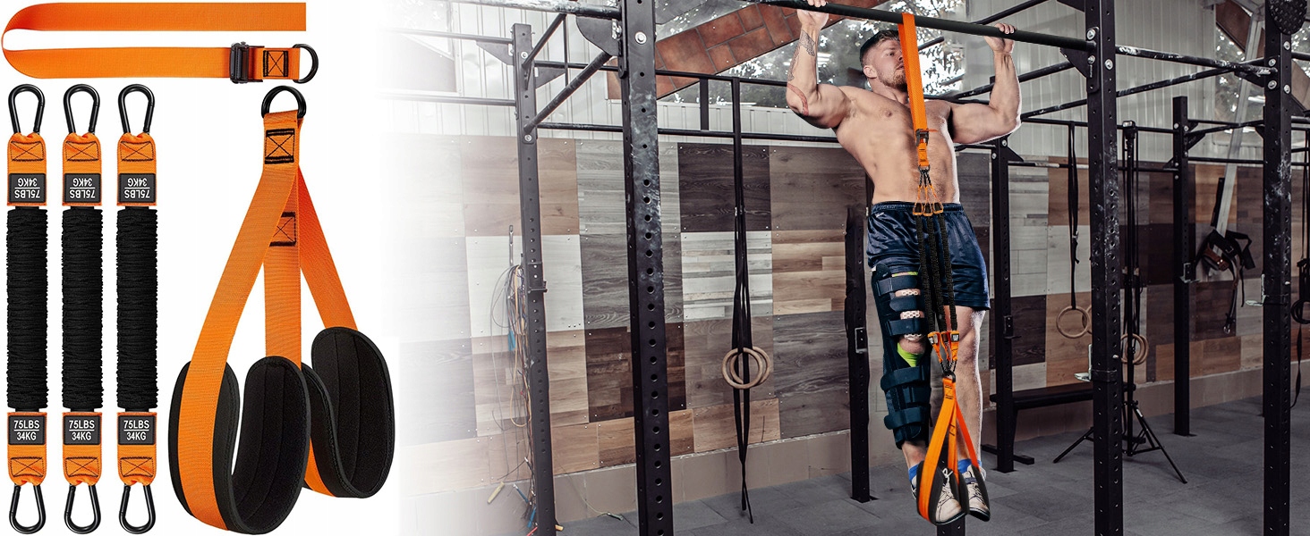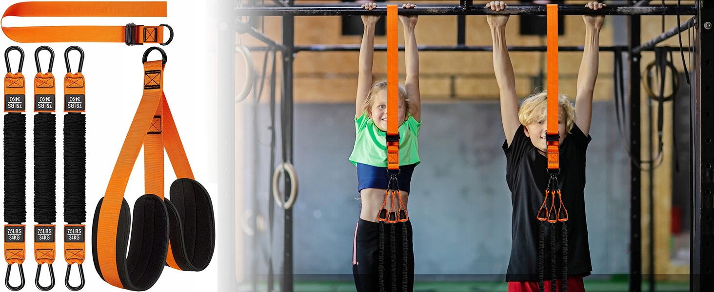 Цей набір для підтягувань включає три стрічки опору міцністю 75 фунтів (34 кг) і рівнями опору в діапазоні від 75 до 225 фунтів (102 кг), що робить його ідеальним для професіоналів у сфері фітнесу та новачків. Незалежно від того, маєте ви надмірну або недостатню вагу, якщо вам важко підтягуватися, спробуйте наш набір для підтягувань. Починаючи з однієї стрічки, комплекс підтягувань допоможе вам поступово збільшувати силу, поки ви не зможете повністю виконувати підтягування самостійно. Це допоможе вам створити міцну фігуру.