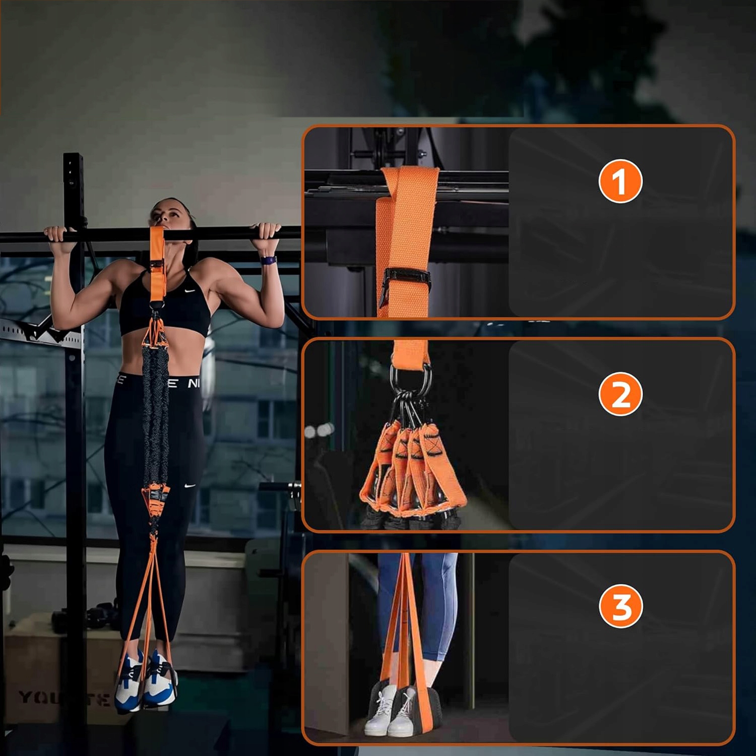 • ✔️Оснащений трьома стрічками опору з рівнями опору від 34 кг до 102 кг. Почніть з однієї опорної стрічки, щоб поступово збільшувати силу, доки не зможете виконувати підтягування повністю самостійно.