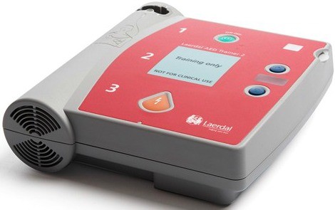 Навчальний дефібрилятор Laerdal AED Trainer 2 імітує роботу дефібрилятора в реальній ситуації зупинки серця, але не забезпечує справжнього енергетичного розряду.