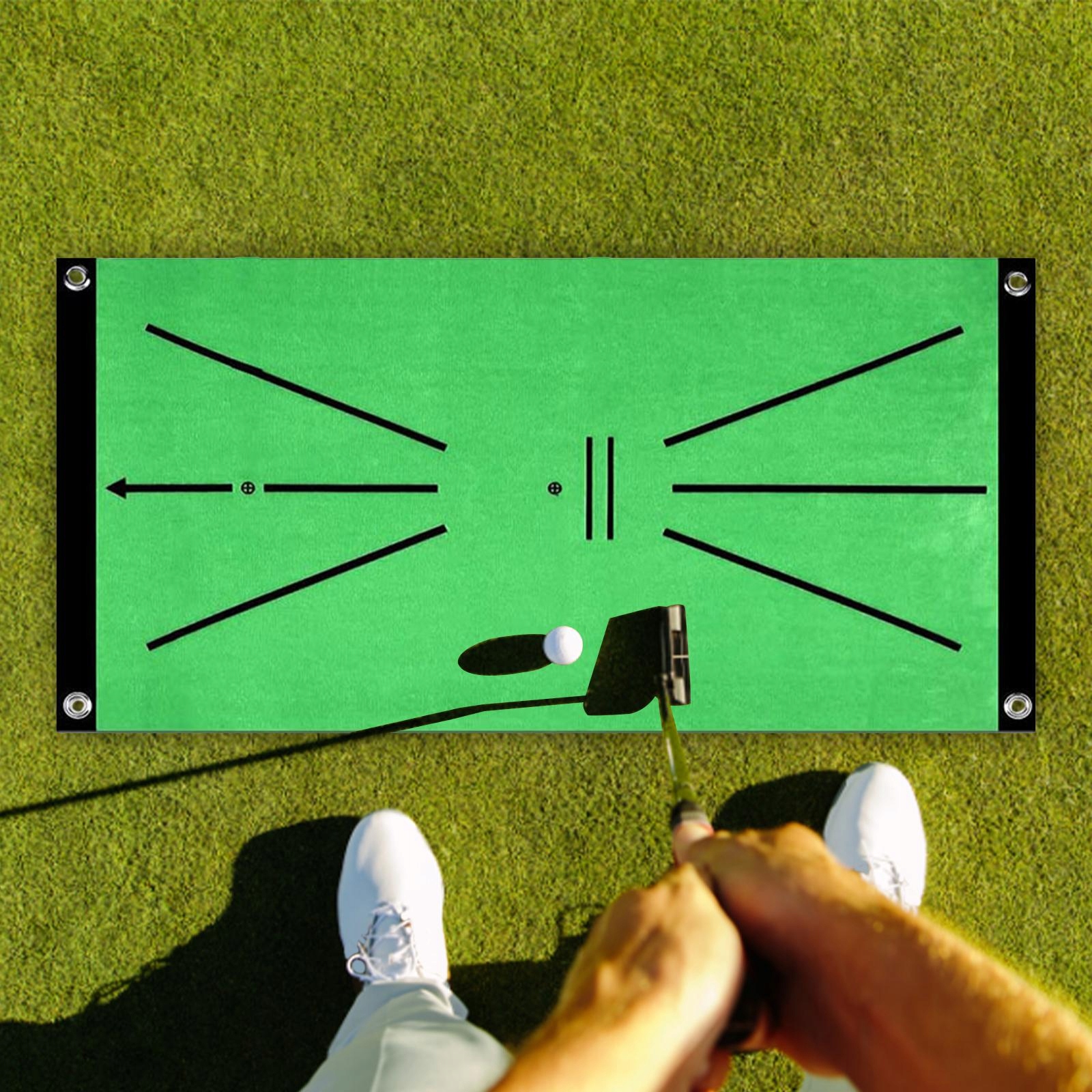 Тренуйтеся будь-де. Тренуйтеся в гольф, не виходячи з дому, офісу, на задньому дворі чи будь-де ще з нашим паттінг-грин. Просто відкрийте внутрішній килимок для патингу, і ви отримаєте повністю функціональне поле для гольфу.