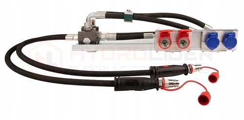 Комплект 3 секції фронтального навантажувача TUR. Комплект адаптований для переднього монтажу на рамі навантажувача. Електромагнітний клапан, підключений до однієї секції в гідророзподільнику, дозволяє управляти двома секціями. У фронтальному навантажувачі він може перемикатися між вирівнюванням рами та відкриванням і закриванням крокодила. Перемикання між розділами електричне і здійснюється за допомогою кнопки на панелі або джойстика.