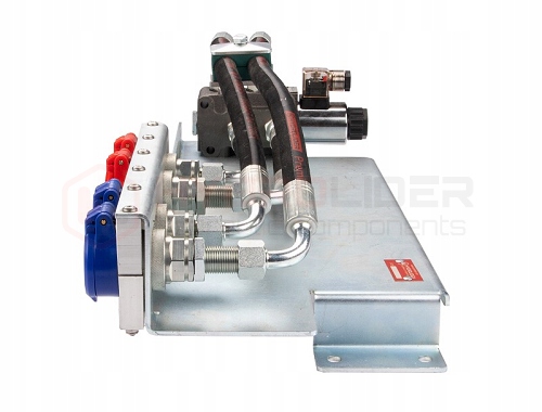Заповніть 3-тю секцію для фронтального навантажувача TUR. Набір призначений для переднього монтажу на раму навантажувача. Електромагнітний клапан, підключений до однієї секції в гідророзподільнику, дозволяє управляти двома секціями. У фронтальному навантажувачі це може бути перемикання між вирівнюванням рами та відкриттям і закриттям крокодила. Управління перемиканням між розділами електричне і здійснюється за допомогою кнопки на панелі або джойстика.