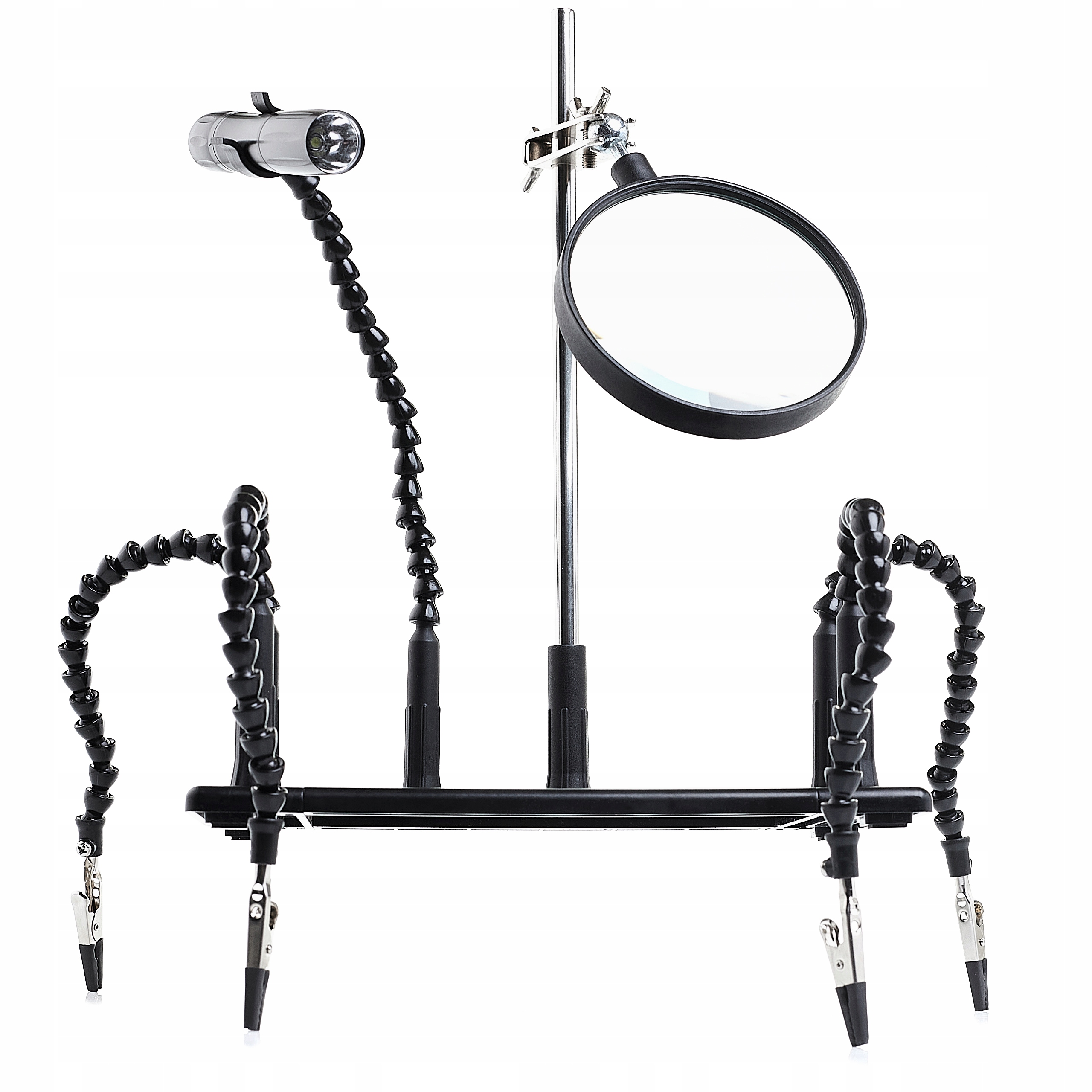 Третя рука зі світлодіодним освітленням, збільшувальним склом, 4 затискачами в формі крокодила