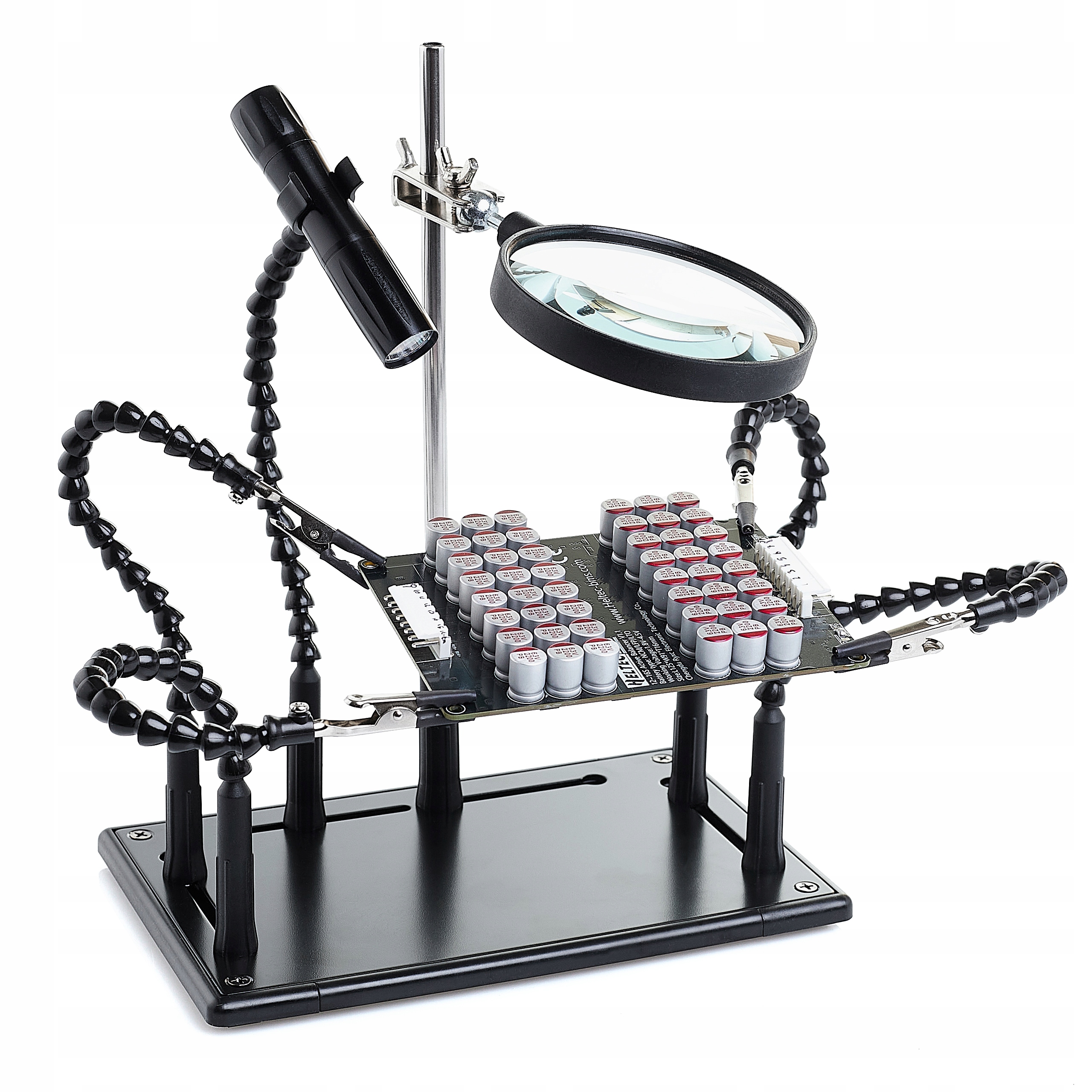 Третя рука з світлодіодним освітленням, лупою, 4 ручки крокодила