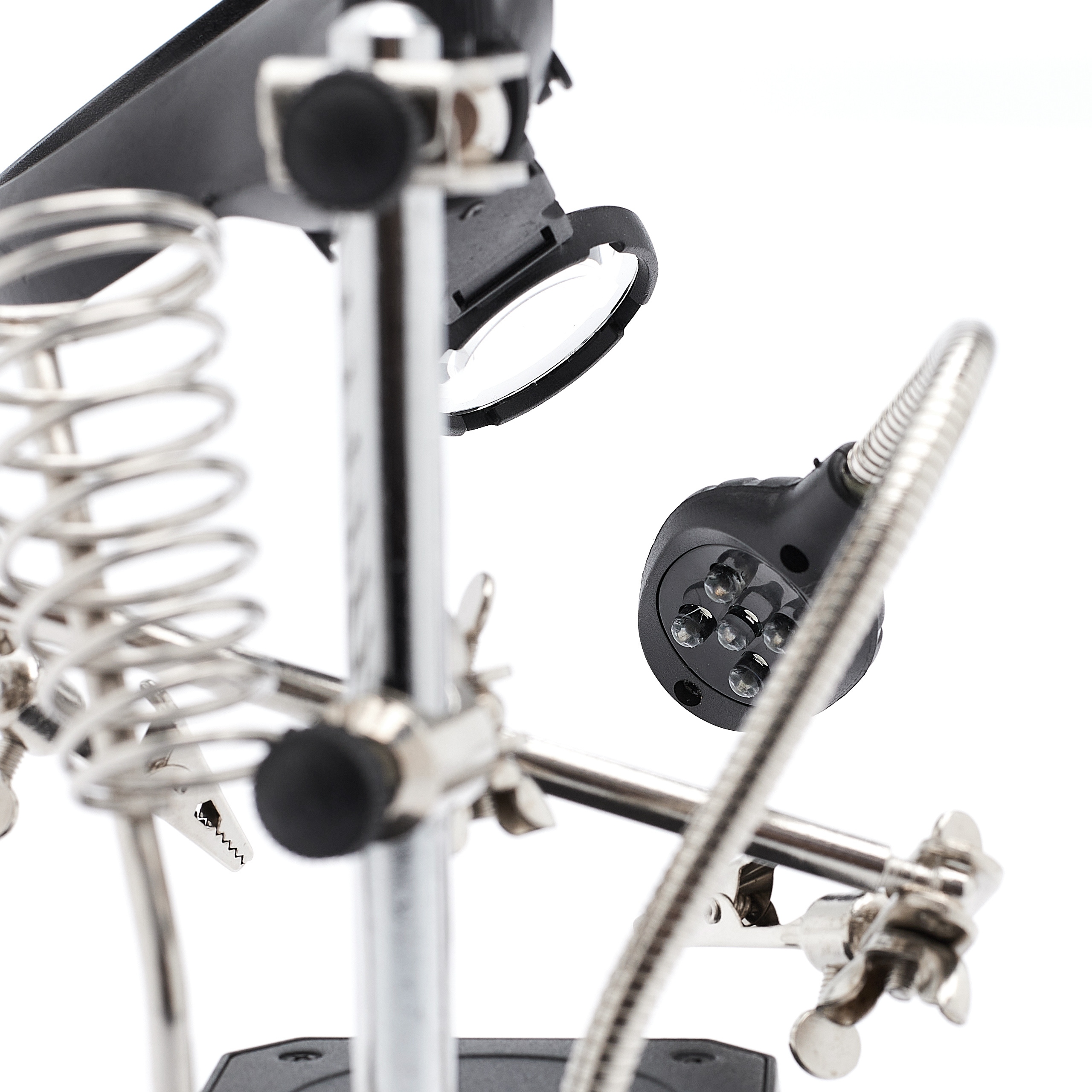 Монтажна ручка - третя рука з підсвічуванням та 3 лупи (90 мм - 2,5x, 34 мм/7,7x та 34 мм/10x)