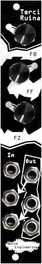 Terci Ruina пропонує три типи спотворень в одному модулі, переосмислених Noise Engineering. Вони з'єднані послідовно для повного звукового знищення будь-якого звуку, але також можуть використовуватися окремо. Встановлюйте та вимикайте в будь-якій точці для різних видів спотворень.