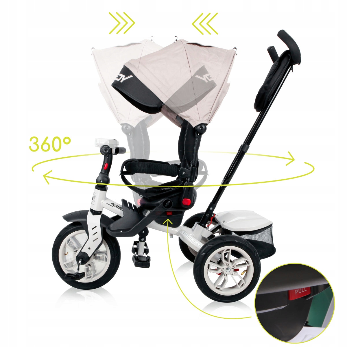 ✔ Швидкий повітряний велосипед був обладнаний регульованим сонцезахисним кремом , який захищає дитину від шкідливого УФ -випромінювання та сильного вітру.