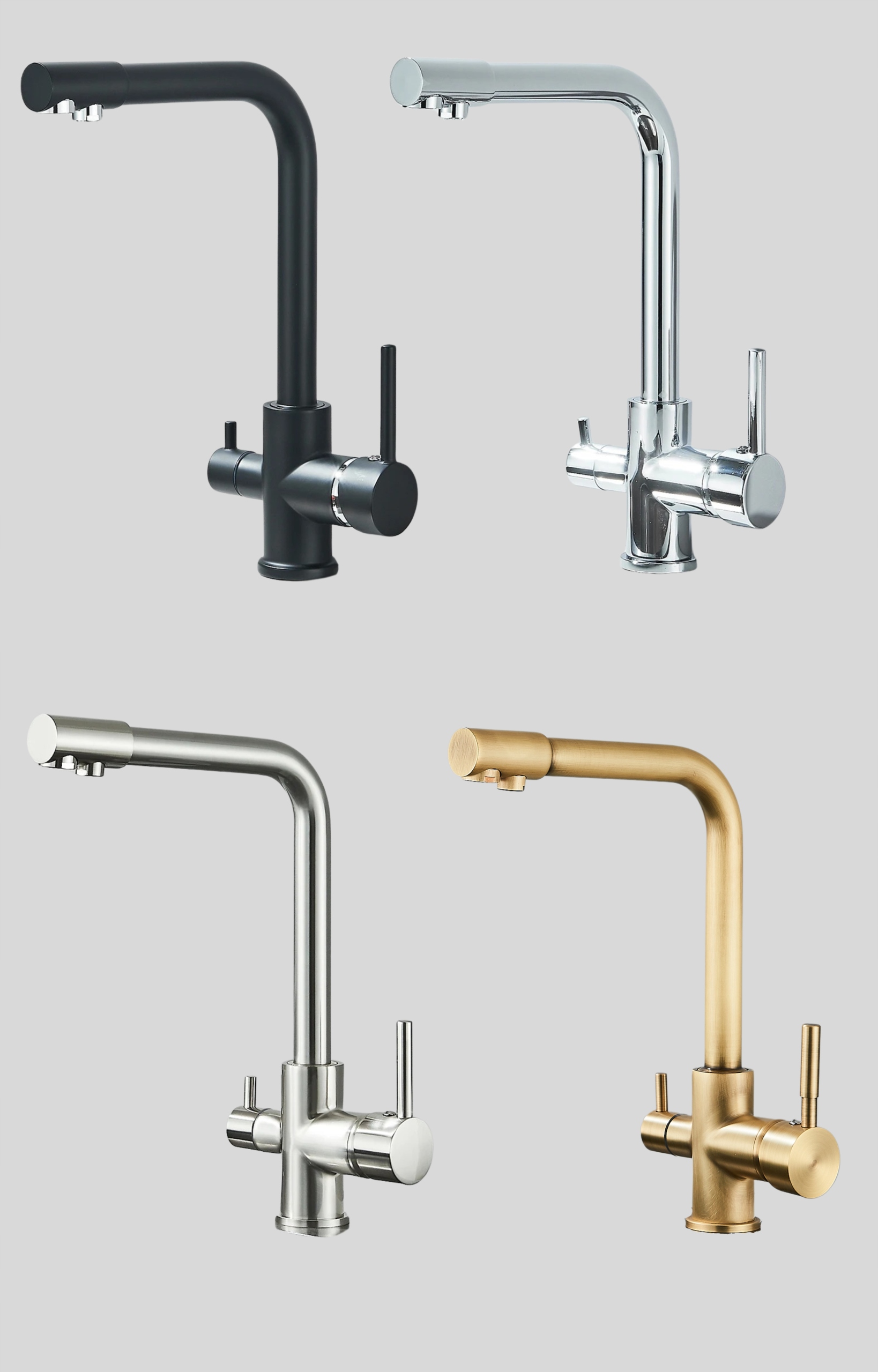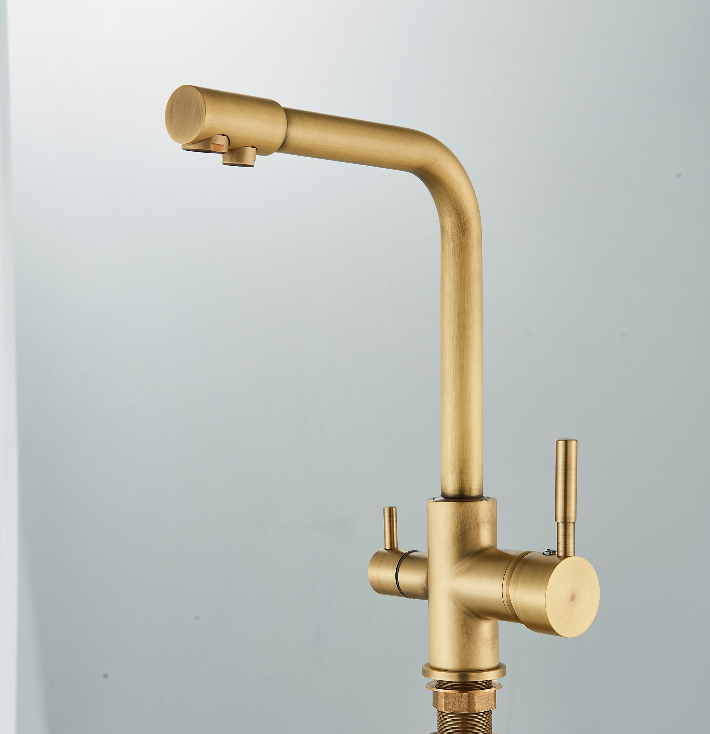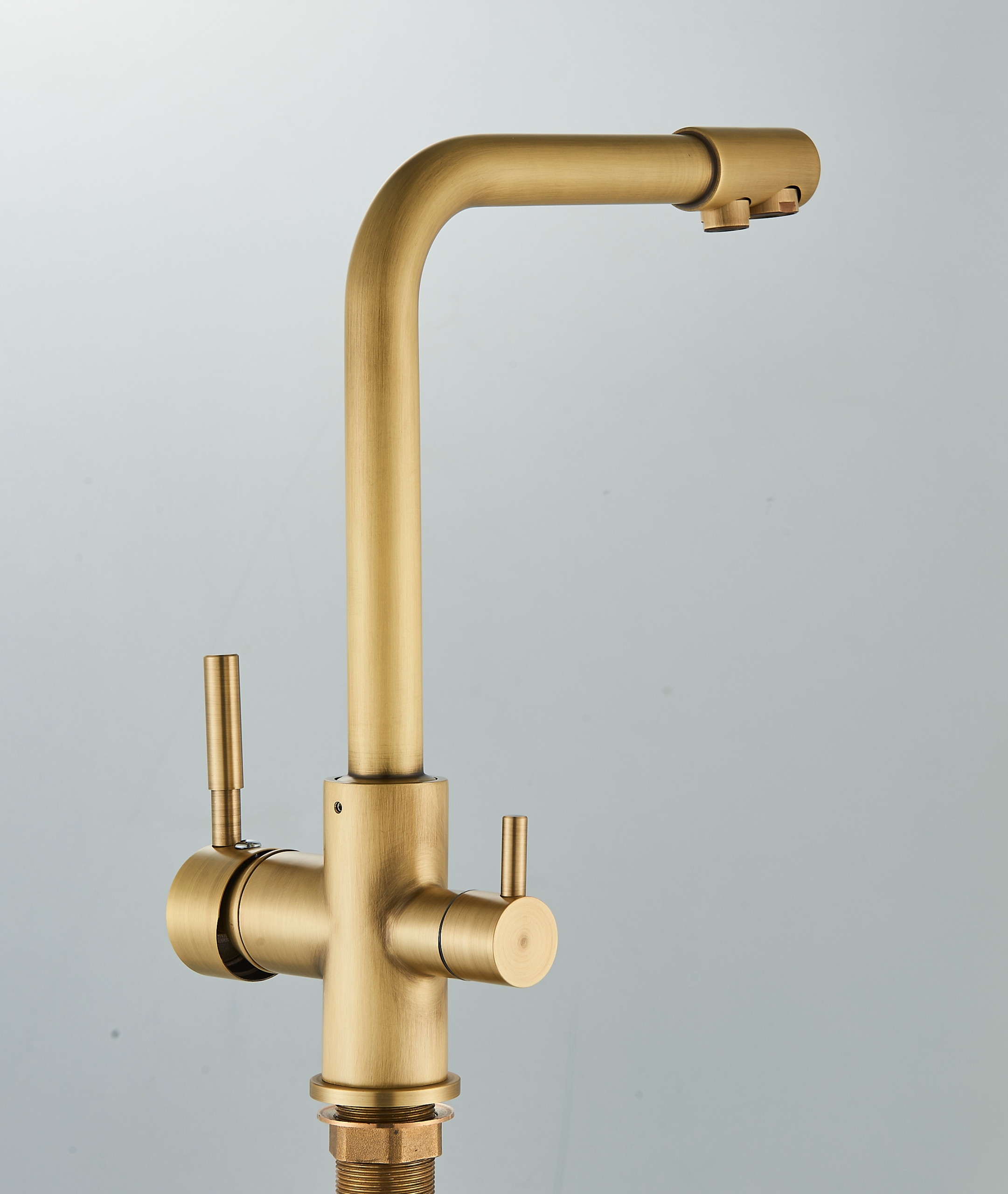 Три -шлях кухонного змішувача для фільтру Fluxus Brass Retro Fit Mind
