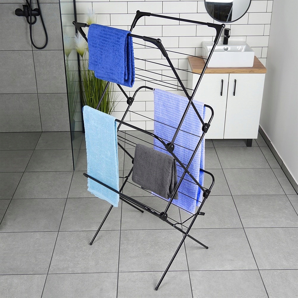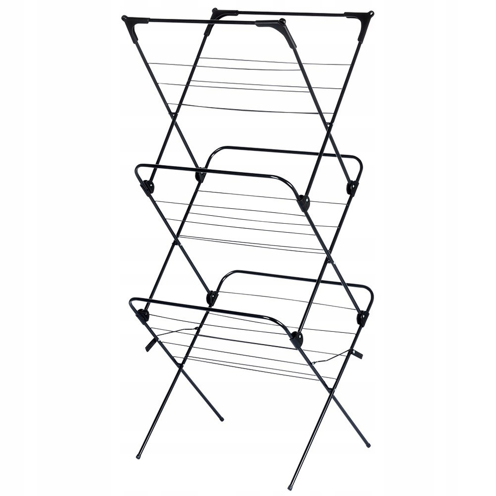 Вертикальна трирівнева сушарка для білизни. Сушарка виконана з міцних матеріалів і представлена в модному чорному кольорі. Простий механізм складання і розкладання, тому в складеному вигляді не займає багато місця. Його мінімалістичний дизайн ідеально впишеться в будь-яку кімнату. Необхідно мати в кожному домі. При правильному використанні він прослужить багато років. Оригінальний продукт Vilde. Вироблено відповідно до європейських стандартів.