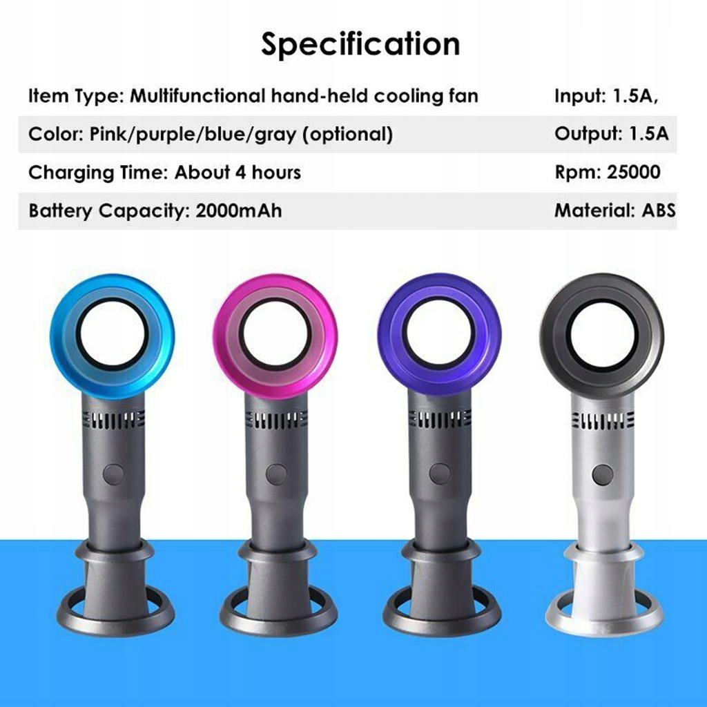 Потужний повітряний об'єм 3 регульовані налаштування: оснащені трьома рівнями низької швидкості, середньої та високої. Невеликі розміри, легко перенести, оснащуючи базу, яка полегшує розміщення, з функцією підставки для мобільного телефону, обов'язкового продукту на подорожі