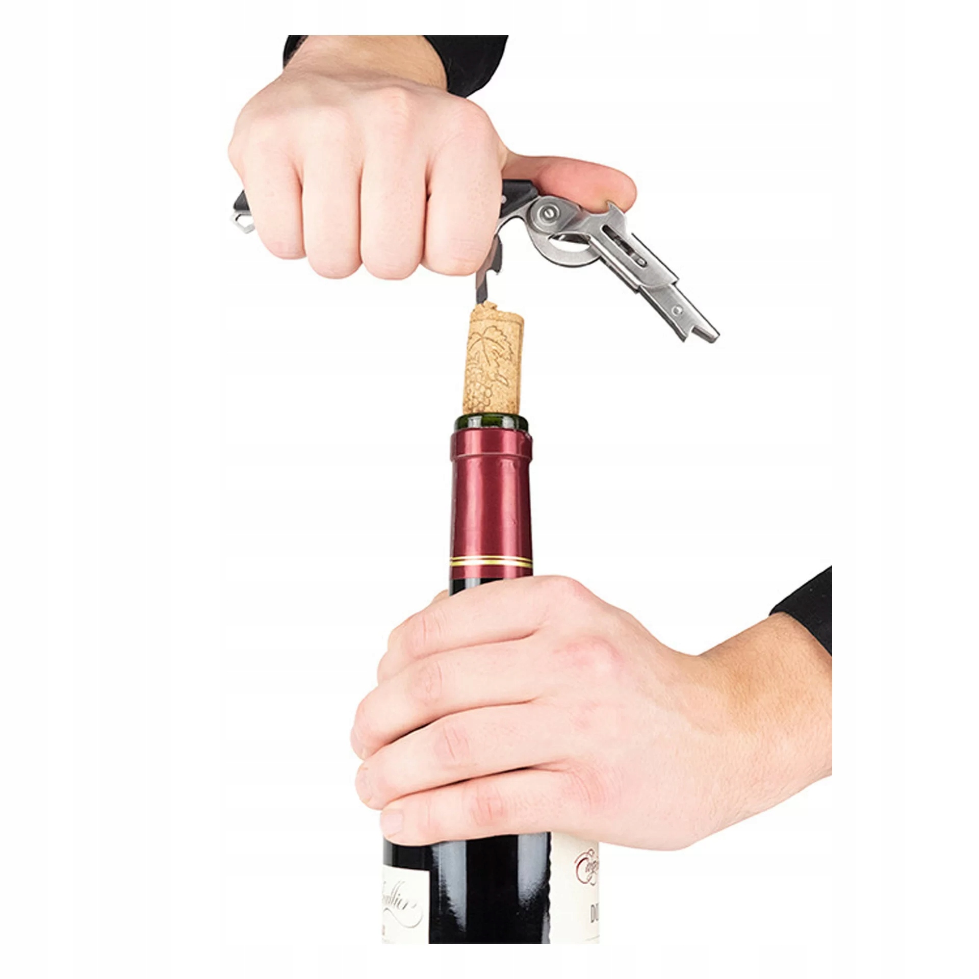 - має лезо для різання фольги, відкривач для пляшок, пробки