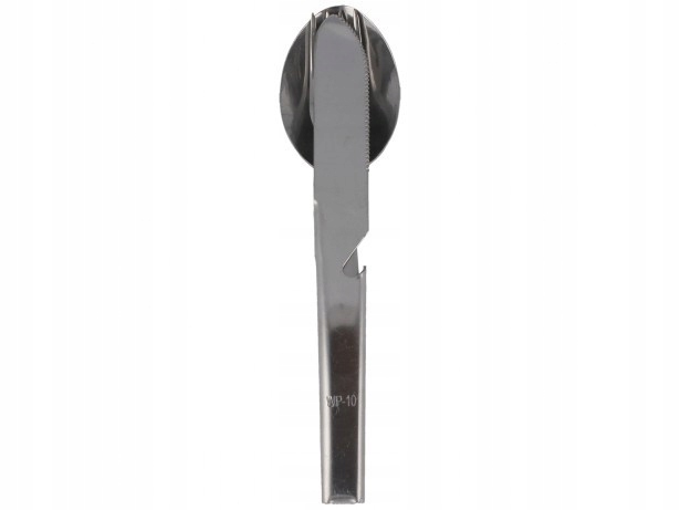 Ложка і виделка упаковані в ніж, який має відповідну форму, так що ці три елементи утворюють набір як на фото. Крім того, до складу ножа входить відкривачка для банок і пляшок. Набір виготовлений з нержавіючої сталі. Ви можете легко помістити його в кишеню або лоток. Не заважає і не сковує рухів. Можна використовувати як мірну чашку. Військові речі мають довжину 20 см. Вага набору 169 грам. Такий же бажаний і відомий, як швейцарський армійський ніж. Набагато менш складний.