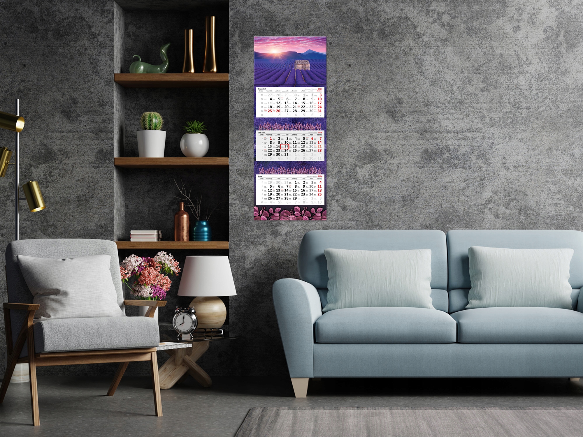 Красивий трикомпонентний календар на 2024 рік Premium з опуклою фольгованою головкою LUX