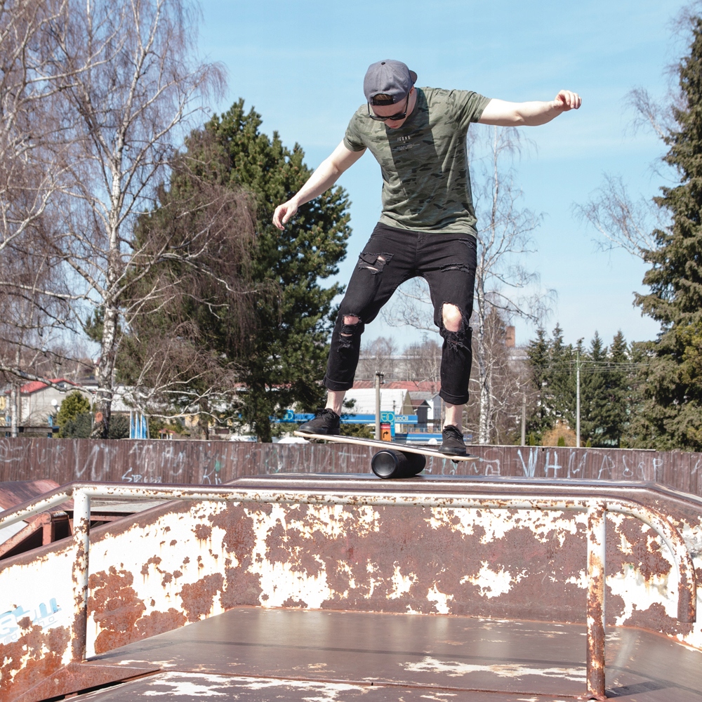 Міцна дерев'яна дошка має шорстку поверхню, яка запобігає ковзанню та забезпечує краще захоплення. Запобіжні обмежувачі внизу дошки чудово підходять для початківців, оскільки вони допомагають їм почуватися впевненіше. Циліндр діаметром 10,5 см забезпечує ідеальний кут нахилу.