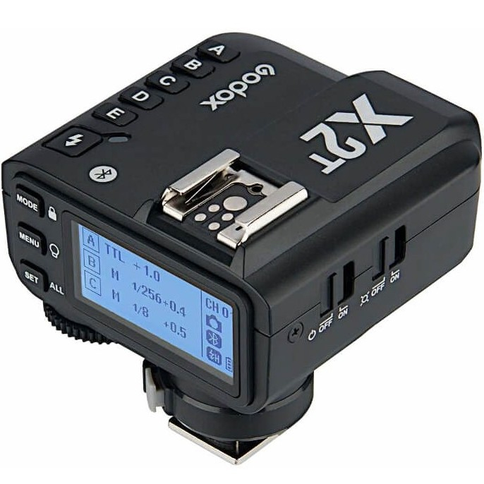 Передавач Godox X2T це багатофункціональний інструмент, який можна використовувати як тригер або контролер лампи для студійних камер, а також бездротовий затвор камери.