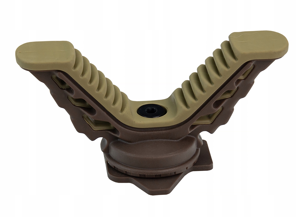 Обертова V-подібна підставка має фіксацію положення та функцію швидкого розбирання. Для цього просто перемістіть важіль блокування та натисніть кнопку зняття гачка. Широкі кронштейни покриті м’якою нековзкою гумою, яка стабілізує зброю незалежно від її розміру та форми, не створюючи подряпин чи вм’ятин.