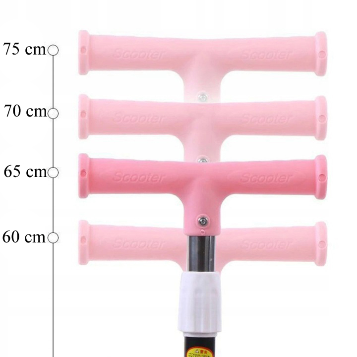Скутер для дитини має простий дизайн, складається з трьох частин: платформи, кермо та колеса. Платформа виготовлена з міцного матеріалу, який є пластиком, забезпечує стабільну основу для дитини, щоб поставити ноги. Рульове колесо регульоване і виготовлене з м'якого матеріалу, що не має ковзання, щоб забезпечити зручні ручки для рук дитини. Рульове колесо можна додатково відрегулювати залежно від висоти (максимальна висота може бути 75 см ). Колеса виготовлені з гуми і мають правий діаметр, щоб дозволити легкий рух на різних поверхнях. Крім того, вони оснащені освітленням світлодіод , який працює під час руху на скутер :)