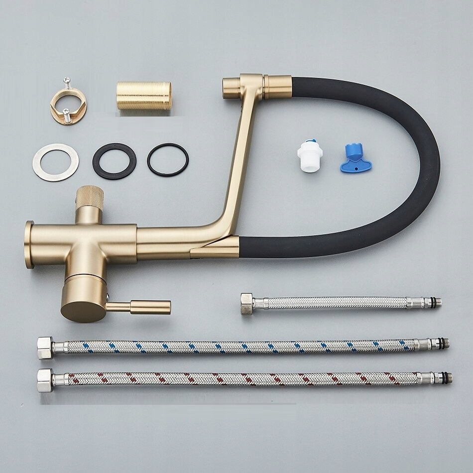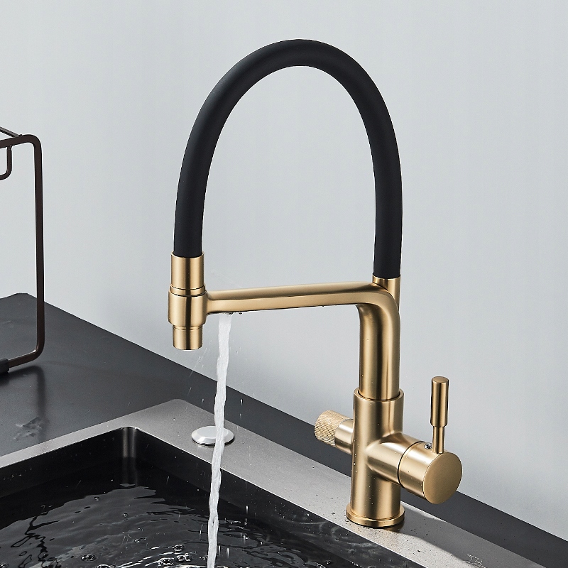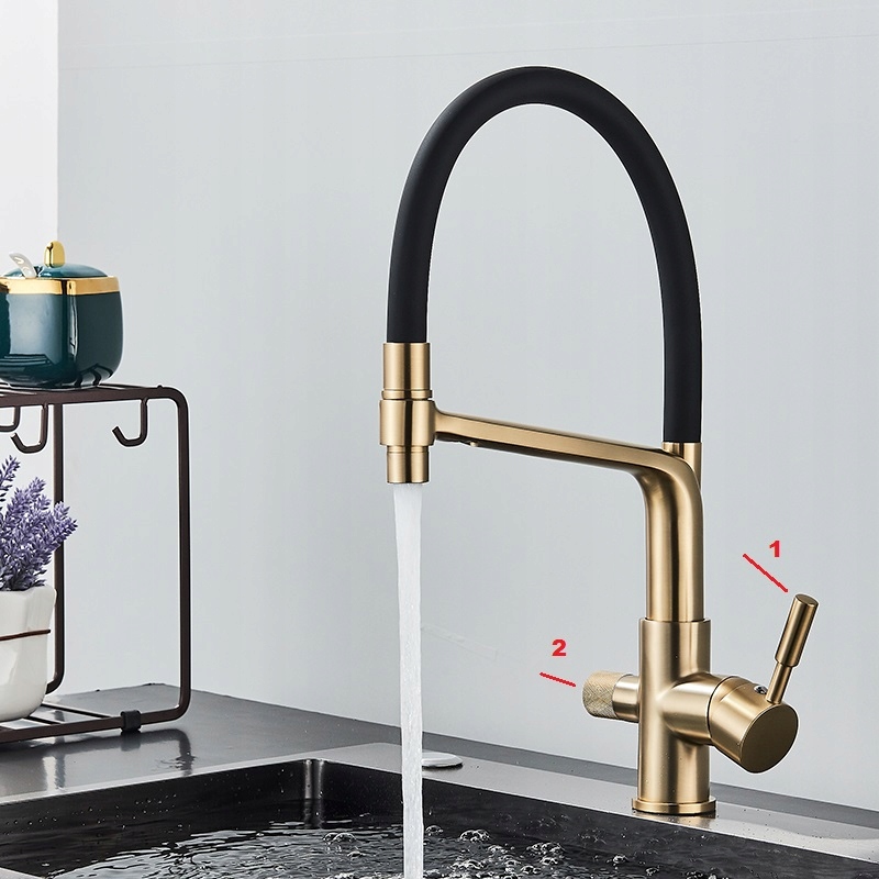 Використання двоконтурного крана (триходові крани) дозволяє підключити фільтр до води без необхідності установки (свердління) окремого крана. В одному крані ми маємо два незалежних контуру, один для холодної та гарячої води, а інший для фільтрованої води. У нашій пропозиції: двоконтурні змішувачі з підключенням фільтра для води, триходові крани з висувним виливом, змішувачі для кухні з можливістю підключення фільтрованої води.