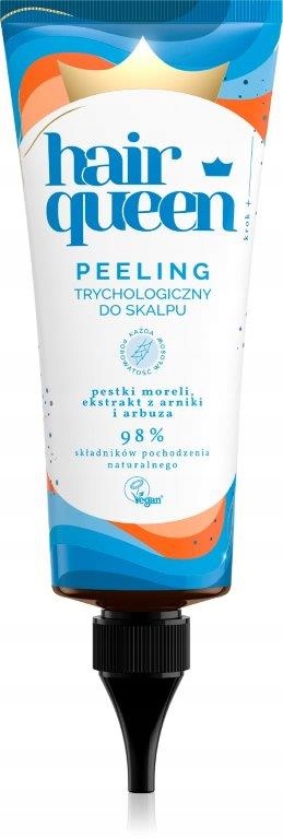 Призначений для очищення шкіри голови. Підходить для всіх типів шкіри. Очищаючий, зміцнюючий і живильний ефект. Видаляє надлишки шкірного сала. Додає об'єм волоссю. Натуральний склад. Веганський. Трихологічний пілінг шкіри голови від бренду Hair Queen - спеціалізований косметичний засіб для догляду за всіма типами шкіри голови. Сучасна формула, що містить 98% інгредієнтів рослинного походження, ефективно очищає шкіру голови, видаляючи надлишки шкірного сала, забруднення та надбудову після укладання волосся. Косметичний засіб глибоко проникає у волосяні цибулини та розблоковує волосяні фолікули, сприяючи відновленню волосся від коренів. Пілінг для шкіри голови Hair Queen, доступний у Dr.Max Drogeria, — це веганський продукт без інгредієнтів тваринного походження. Він містить інгредієнти, що відлущують як механічно, так і хімічно. Подрібнені абрикосові кісточки, як і молочна кислота, допомагають видалити мертву шкіру та відлущують шкіру голови. Натуральні рослинні екстракти, в тому числі: зелений чай і екстракт арніки мають протизапальні, антиоксидантні та заспокійливі властивості. Завдяки їм волосся повертає здоровий вигляд і колишній об'єм.